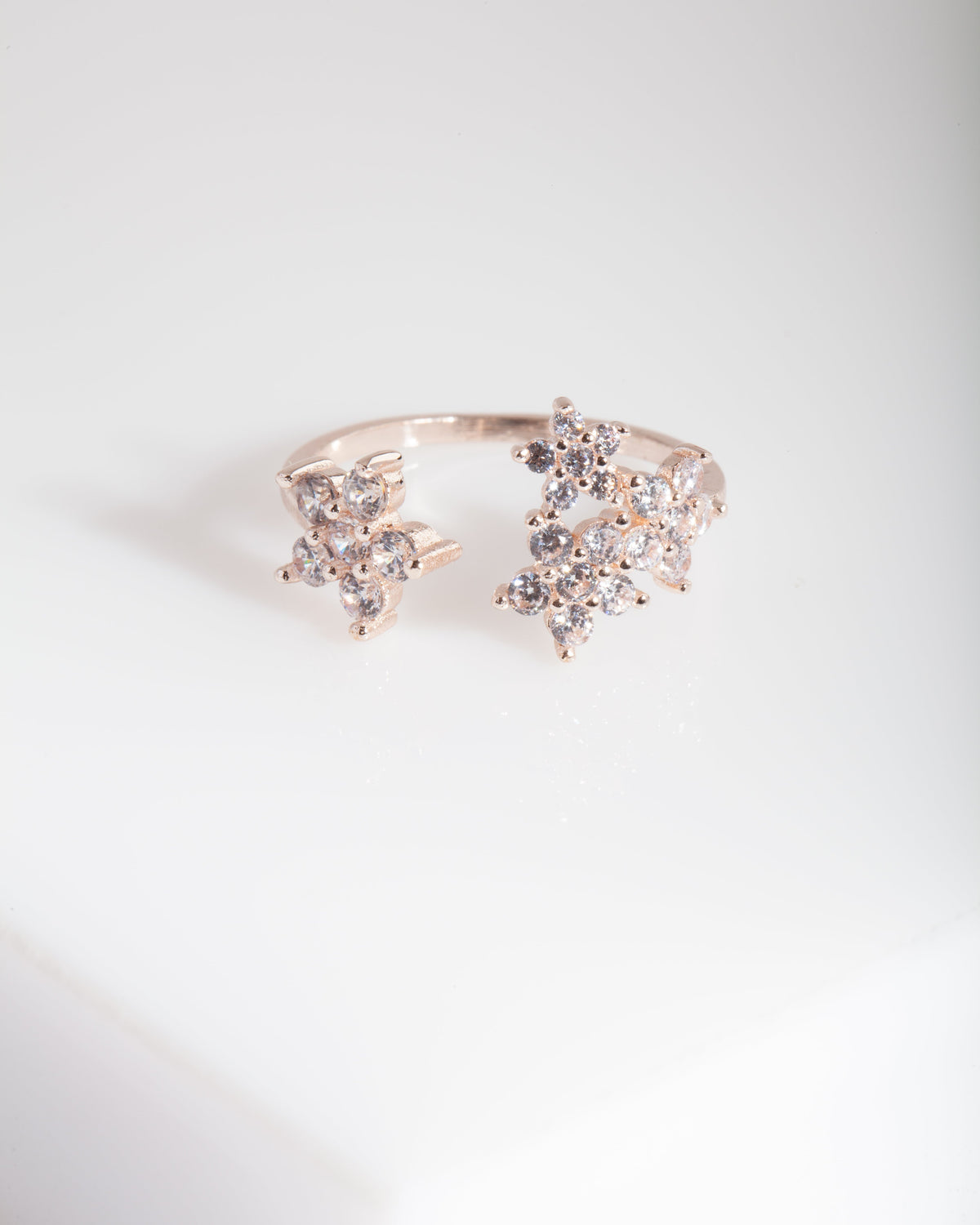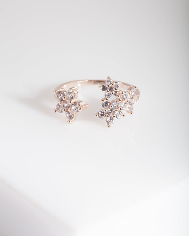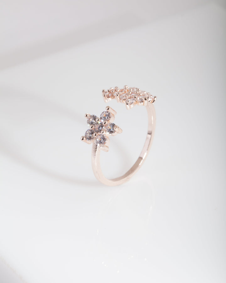 This Rose Gold Cubic Zirconia Flower Ring by Lovisa is a bold and eye-catching piece that adds a touch of glamour to any look. The ring features a rose-gold-toned setting with cubic zirconia embellishments that sparkle with every movement. Whether worn alone for a refined statement or stacked with other rings for extra impact, this piece is perfect for adding a touch of sophistication to your ensemble.
