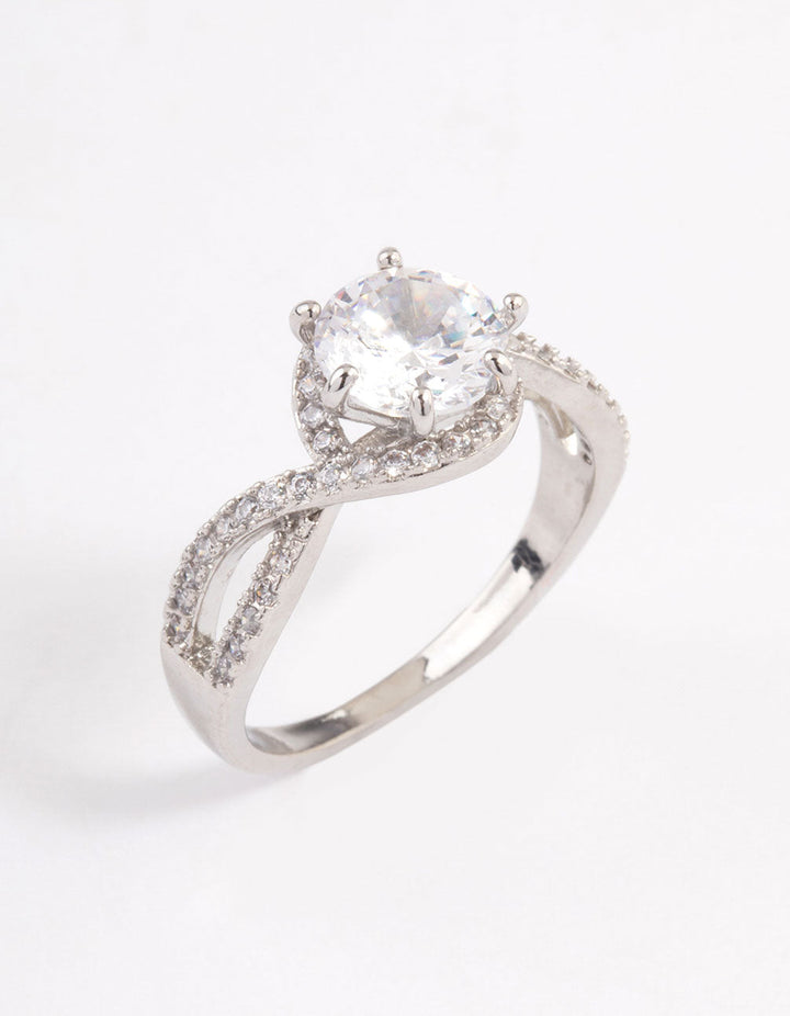 Rhodium Round Infinity Halo Ring