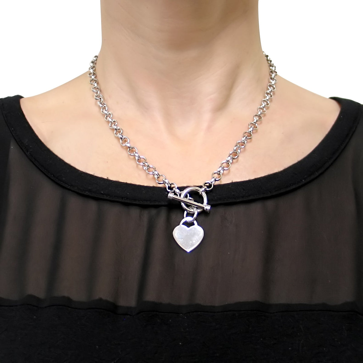 Crafted in sterling silver with a heart charm. 18-inch chain with a secure toggle clasp.
