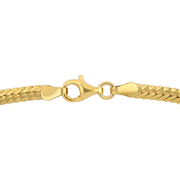 This 3mm Herringbone Bracelet in 18K Yellow Gold Plated Sterling Silver by Mimi & Max combines modern elegance with refined design. The sleek 3mm herringbone pattern provides a polished, shimmering look, perfect for both casual and formal wear. Its 7.5-inch length and lobster clasp ensure a comfortable and secure fit, making it a versatile and stylish piece.
