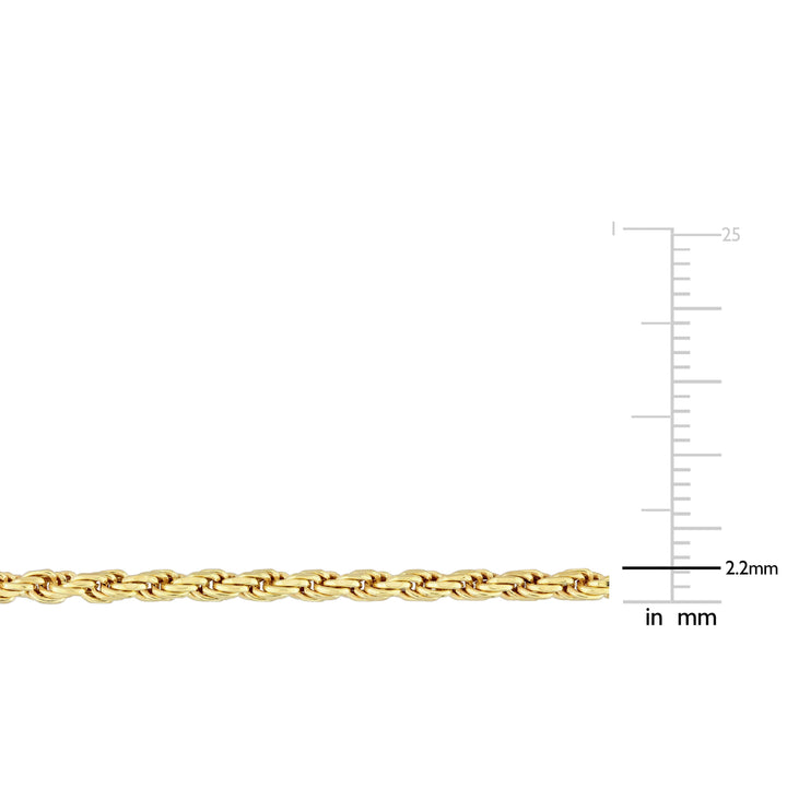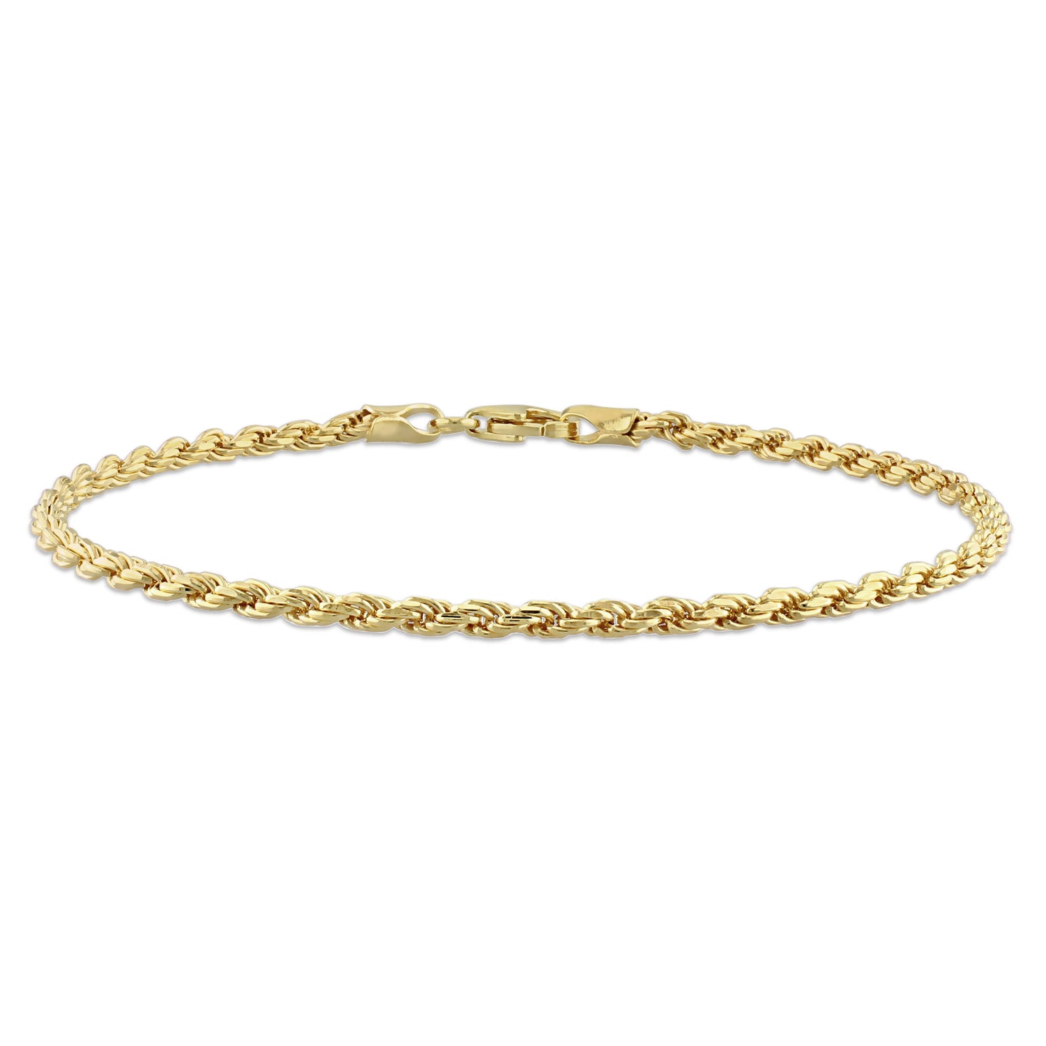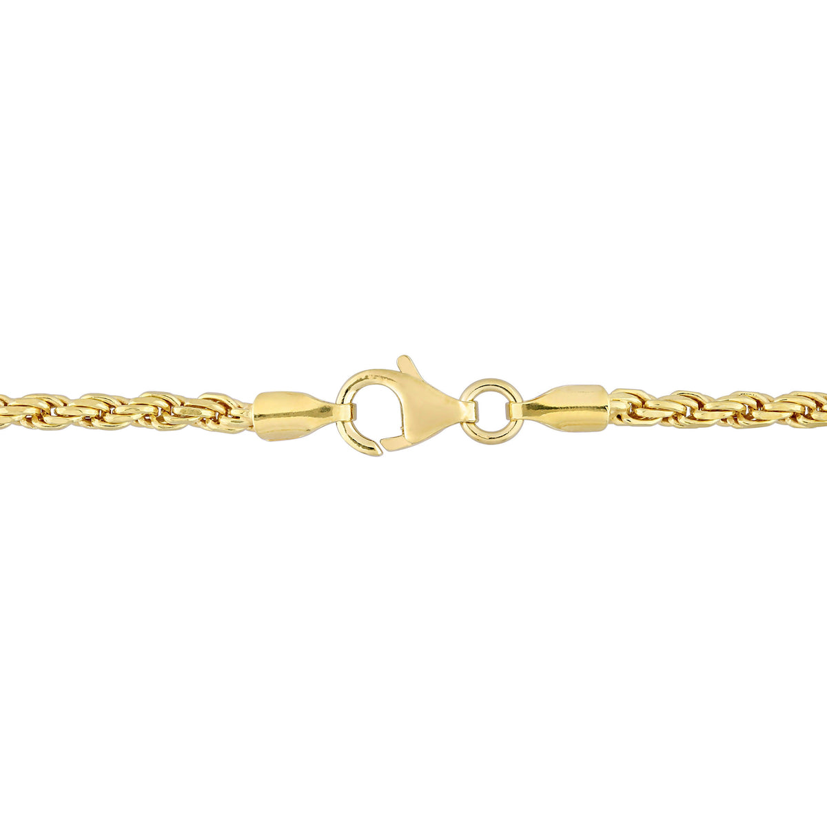 Made from yellow gold-plated sterling silver with a rope chain design. Length is 7.5 inches with a 2.2mm width.
