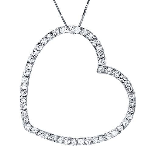 3/4 Ct Lab Grown Diamond Large Heart Shape Pendant 10k White Gold Necklace