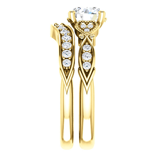 1 1/2ct Diamond Vintage Engagement Matching Wedding Ring Set 14k Gold Yellow