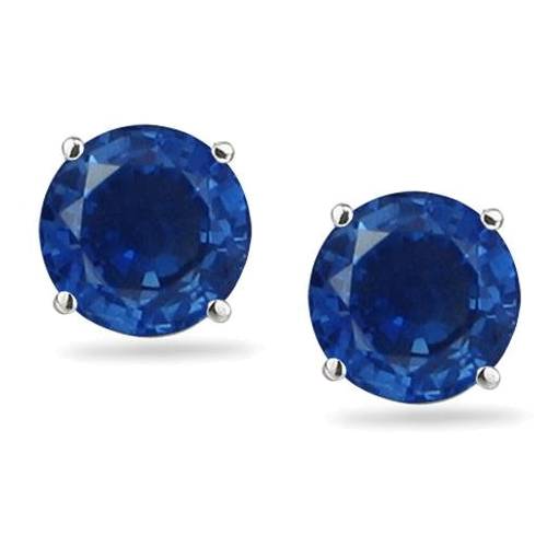 Handcrafted in 14k white gold with two round genuine blue sapphires, totaling 1 1/4ct (ctw). Push back earring backings for secure wear.
