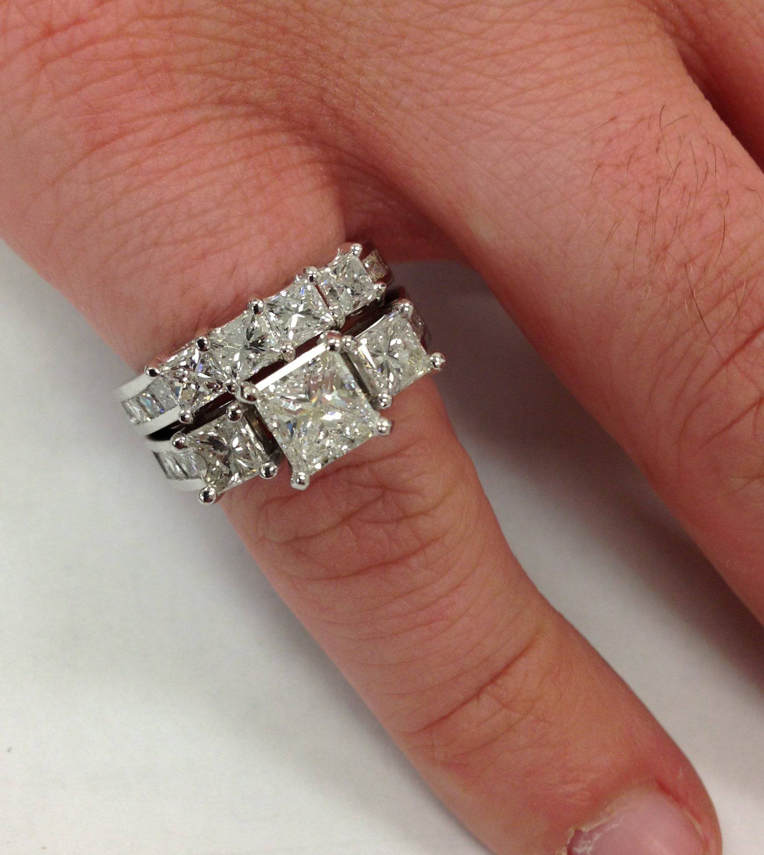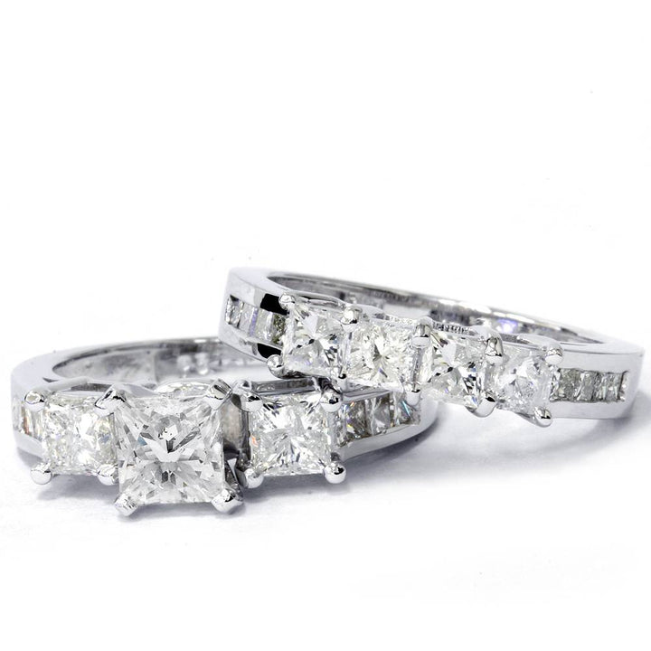 3 1/2ct Princess Cut Diamond Engagement Ring Wedding Set 14K White Gold
