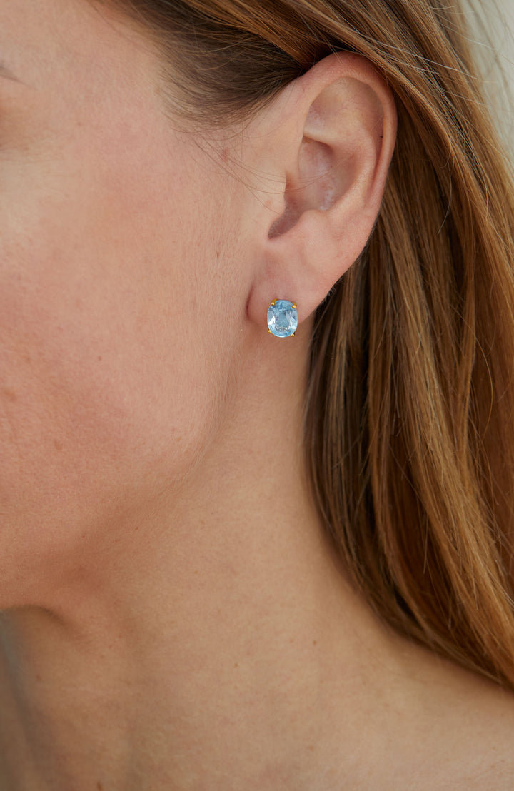 Crafted in metal with genuine 9x7mm oval gemstones. Post-back closures.