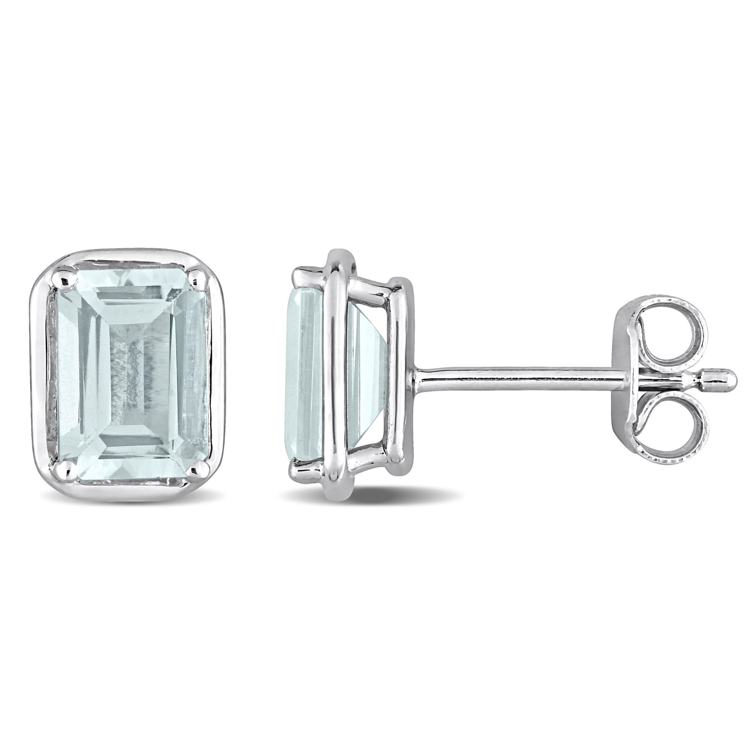 Sterling silver, 1.7ct TGW aquamarine, 7x5mm octagon-cut stones, high-polish finish, butterfly closure.