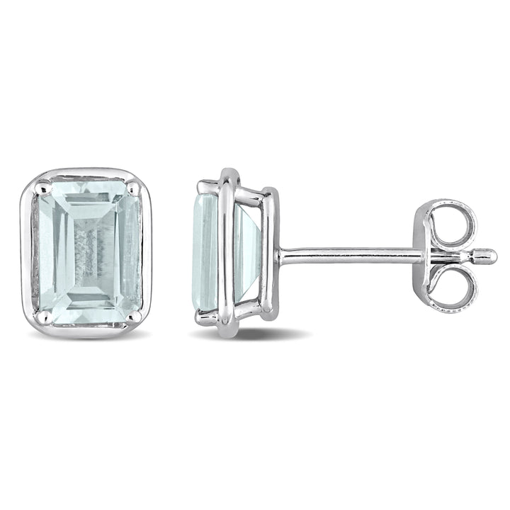 Mimi & Max 1 7/8ct TGW Aquamarine Bezel Style Emerald Cut Stud Earrings in Sterling Silver