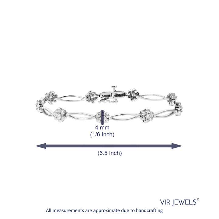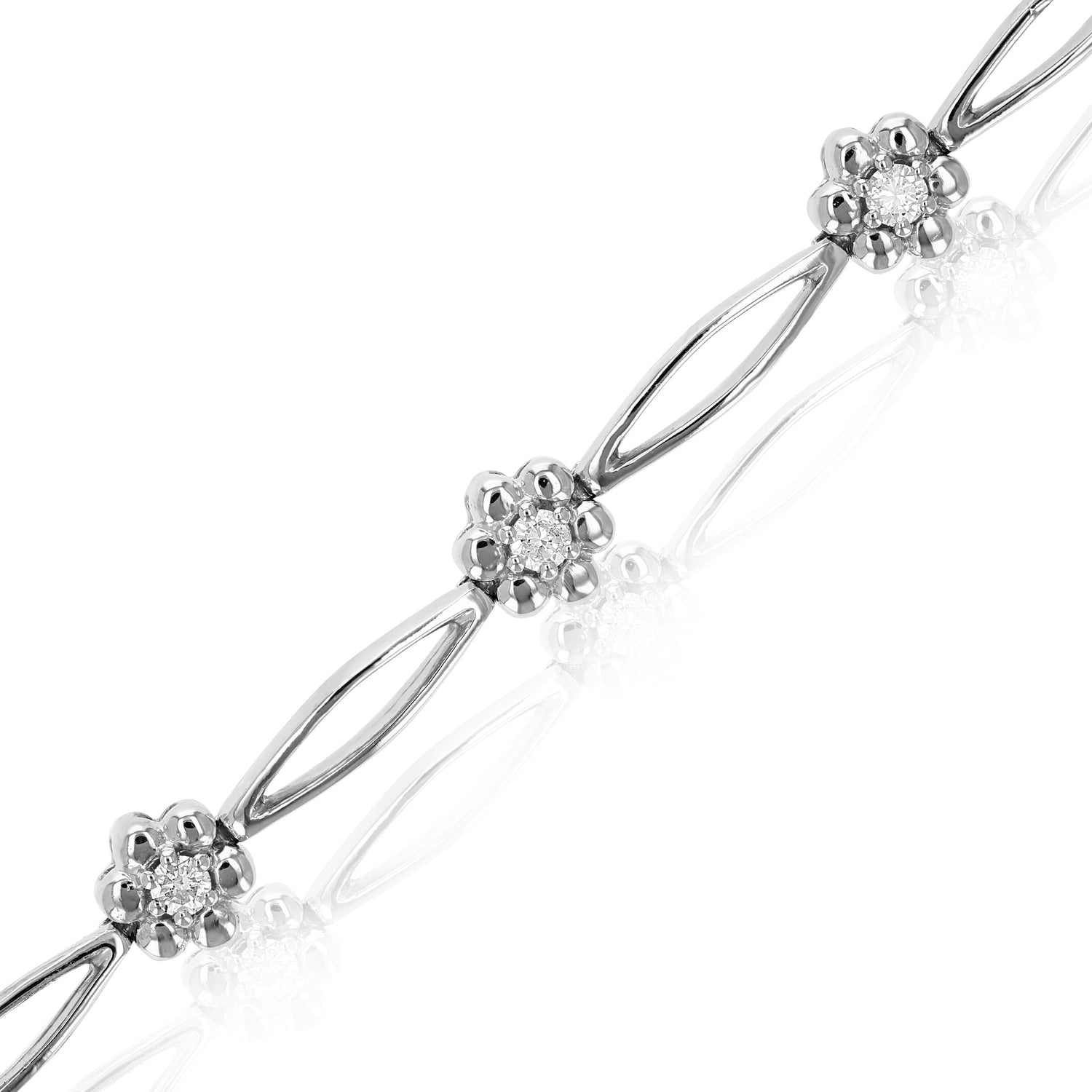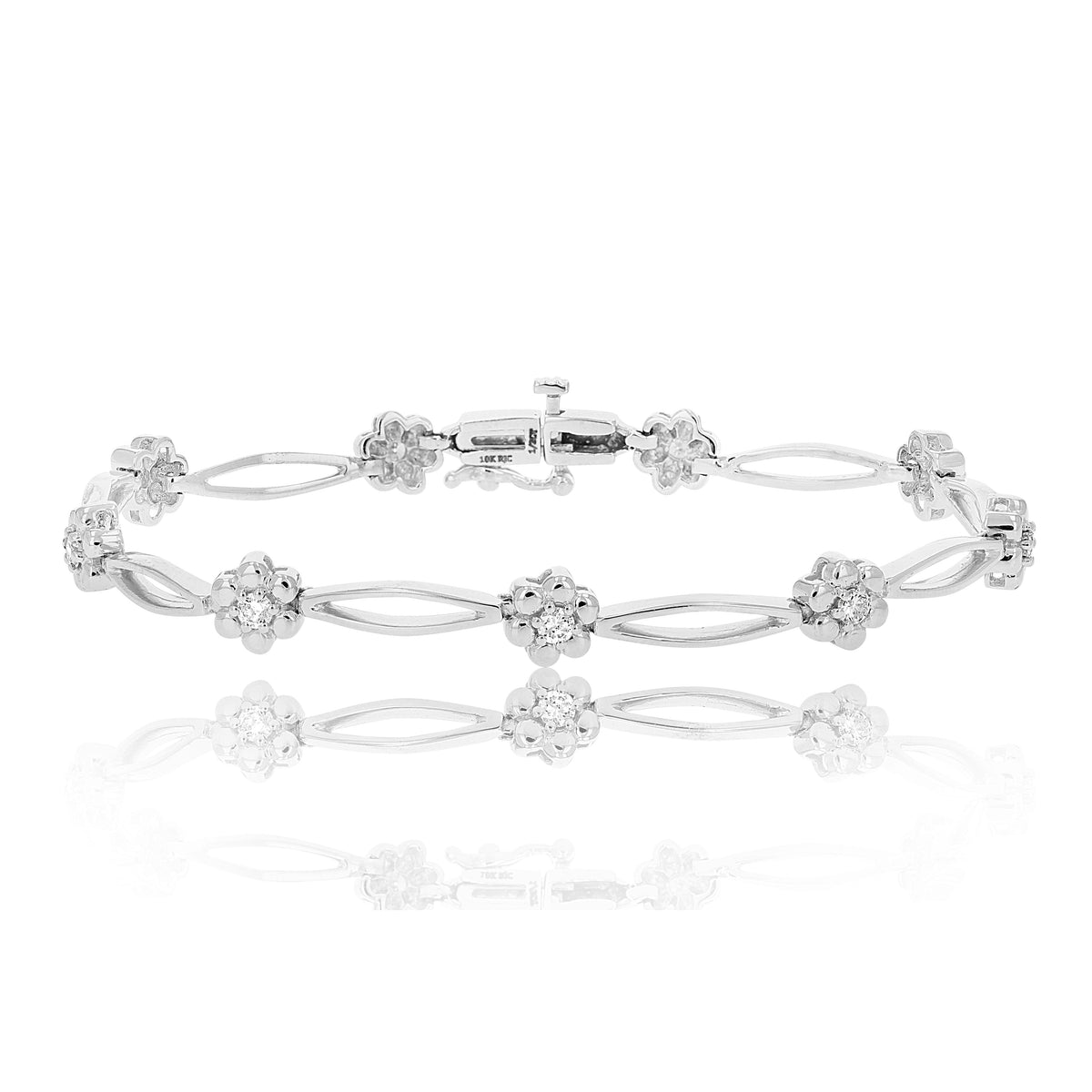 1/2 cttw SI2-I1 Diamond Bracelet 10K White Gold Flower Shape Clover 6.5 Inch