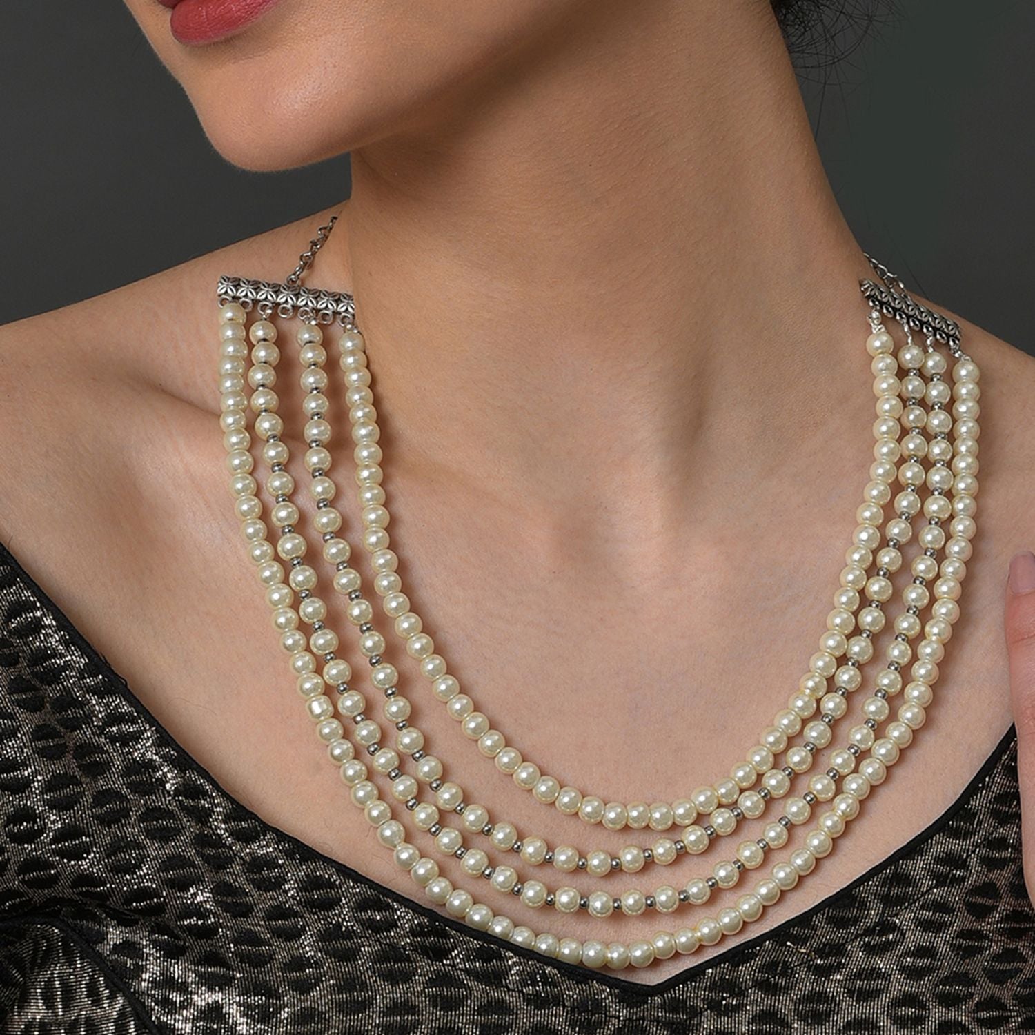 This Pearl Beaded Silver Plated Necklace by SOHI brings timeless charm to any jewelry collection. Featuring lustrous pearl beads delicately strung on a silver-plated chain, this necklace is ideal for elevating both casual and formal ensembles. Its classic appeal makes it a beloved choice for women of all ages.