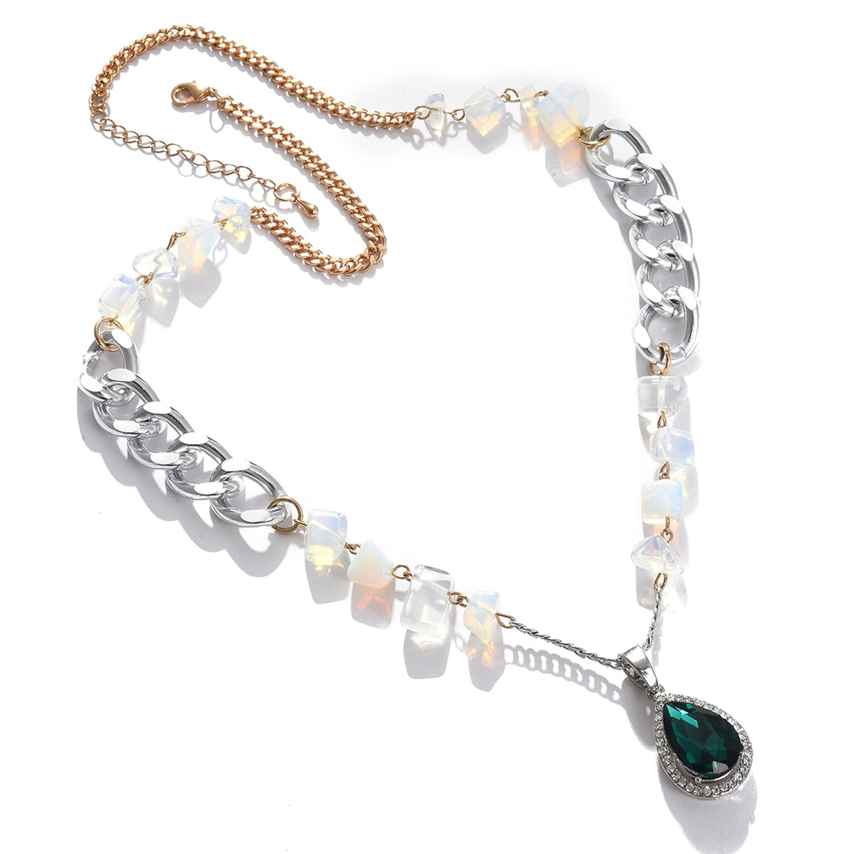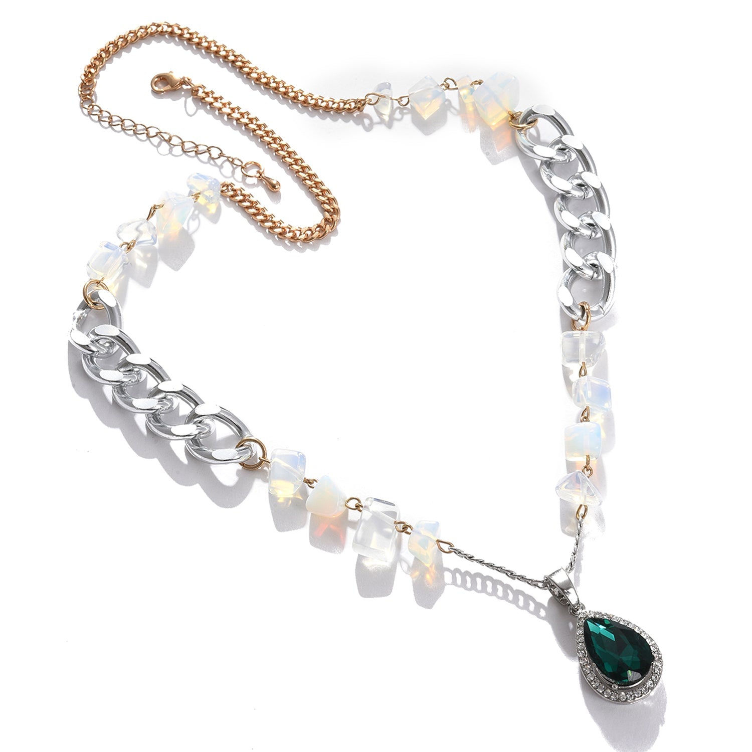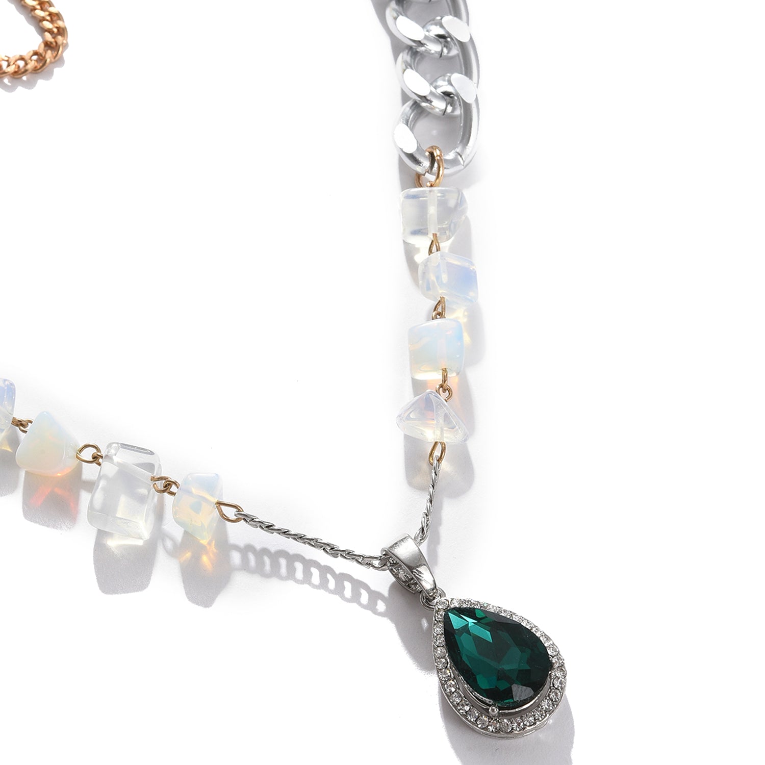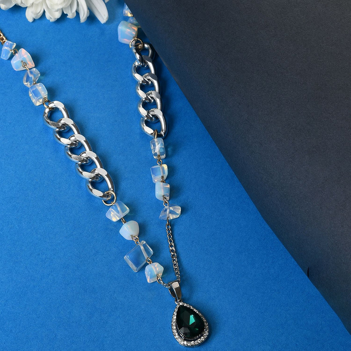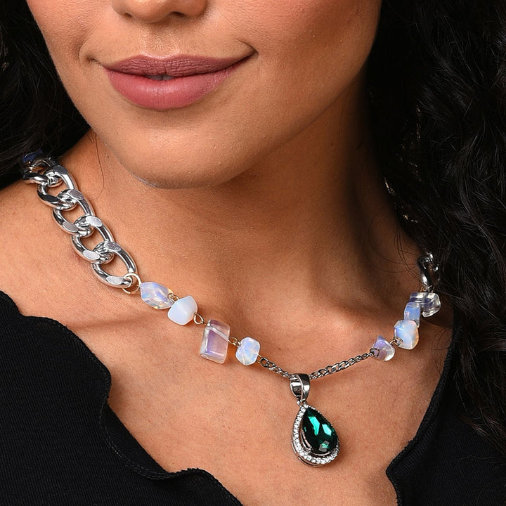 Green Color Silver Plated Designer Stone Necklace For Women's