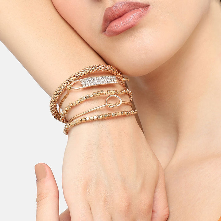 This Gold Plated Designer Stone Casual Bracelet by SOHI brings a casual yet sophisticated touch to any outfit. Its unique designer stones and gold-plated alloy setting create a fashionable accessory that easily elevates any look. Whether you're relaxing in jeans or dressing up, this bracelet provides a stylish finishing touch. Ideal for gifting, it’s a versatile piece that pairs effortlessly with both casual and more formal attire.