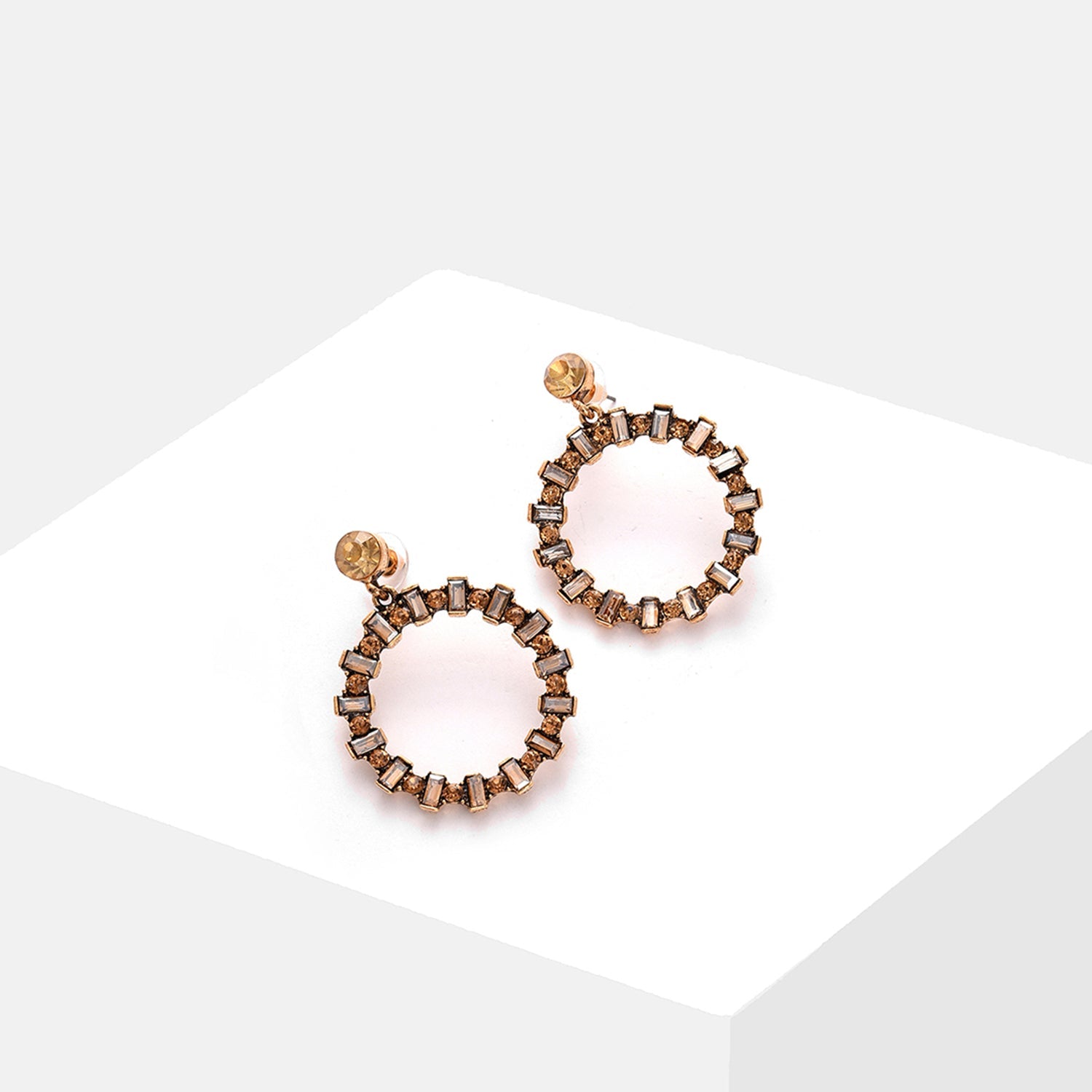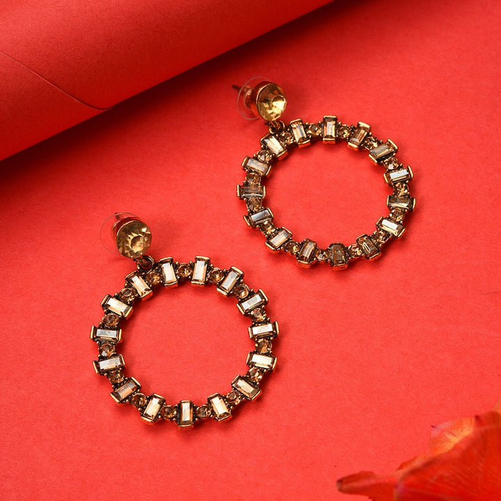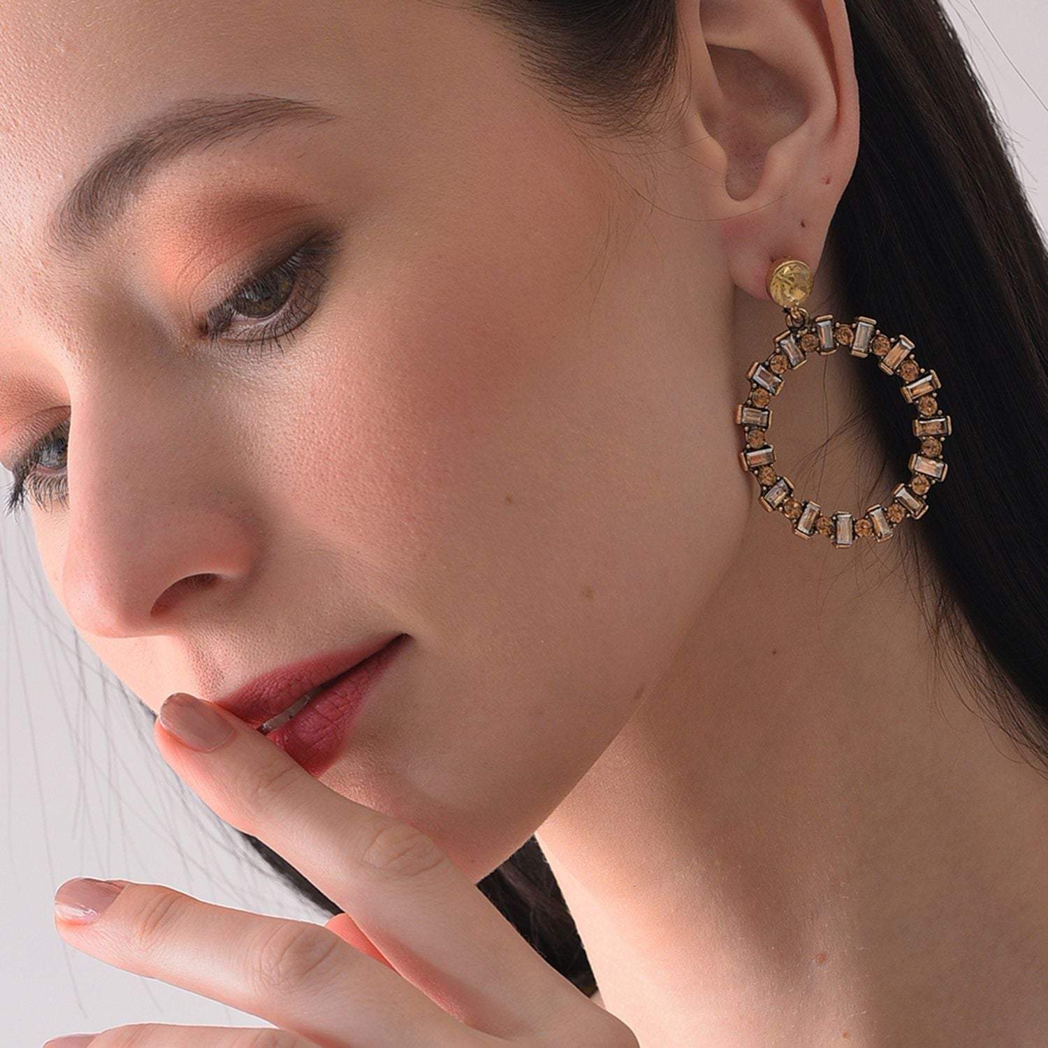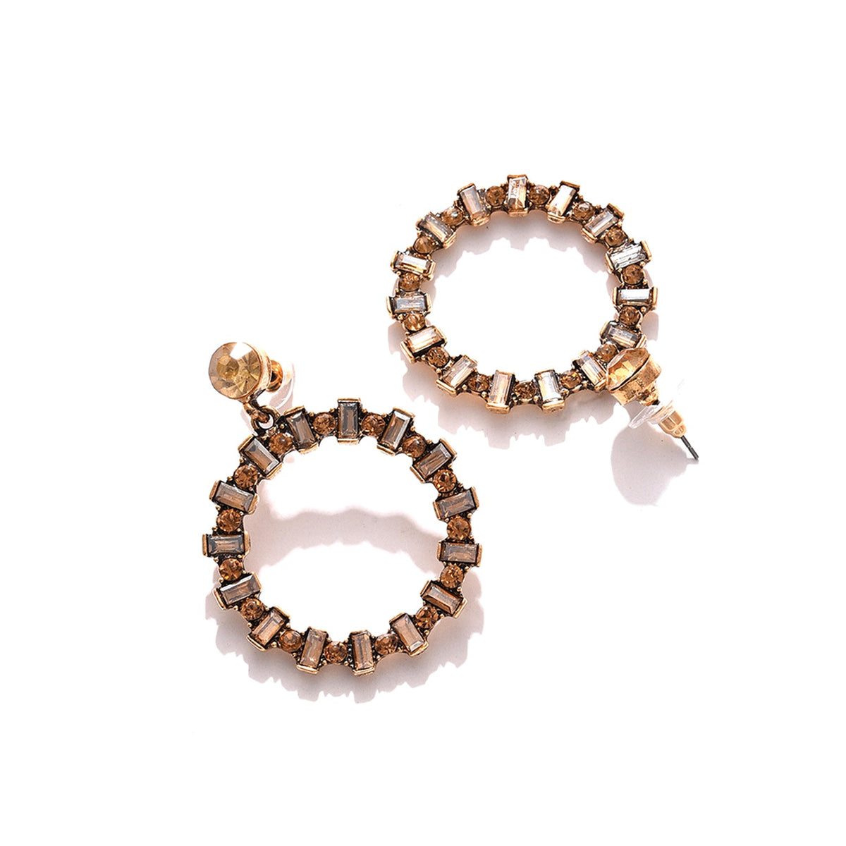Gold-plated alloy with designer stone detailing. High-polish finish for a luxurious look. Lightweight construction for ease of wear. Secure hook closure.