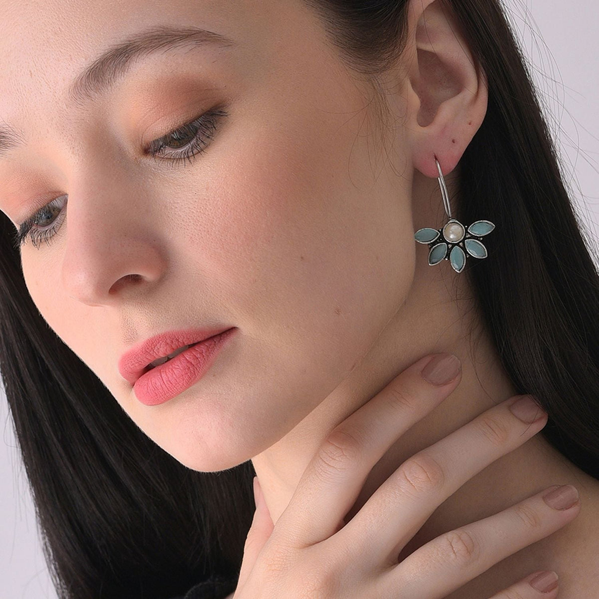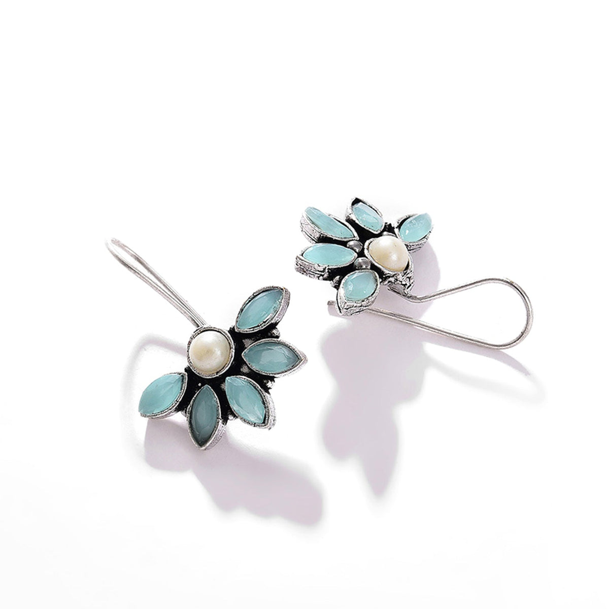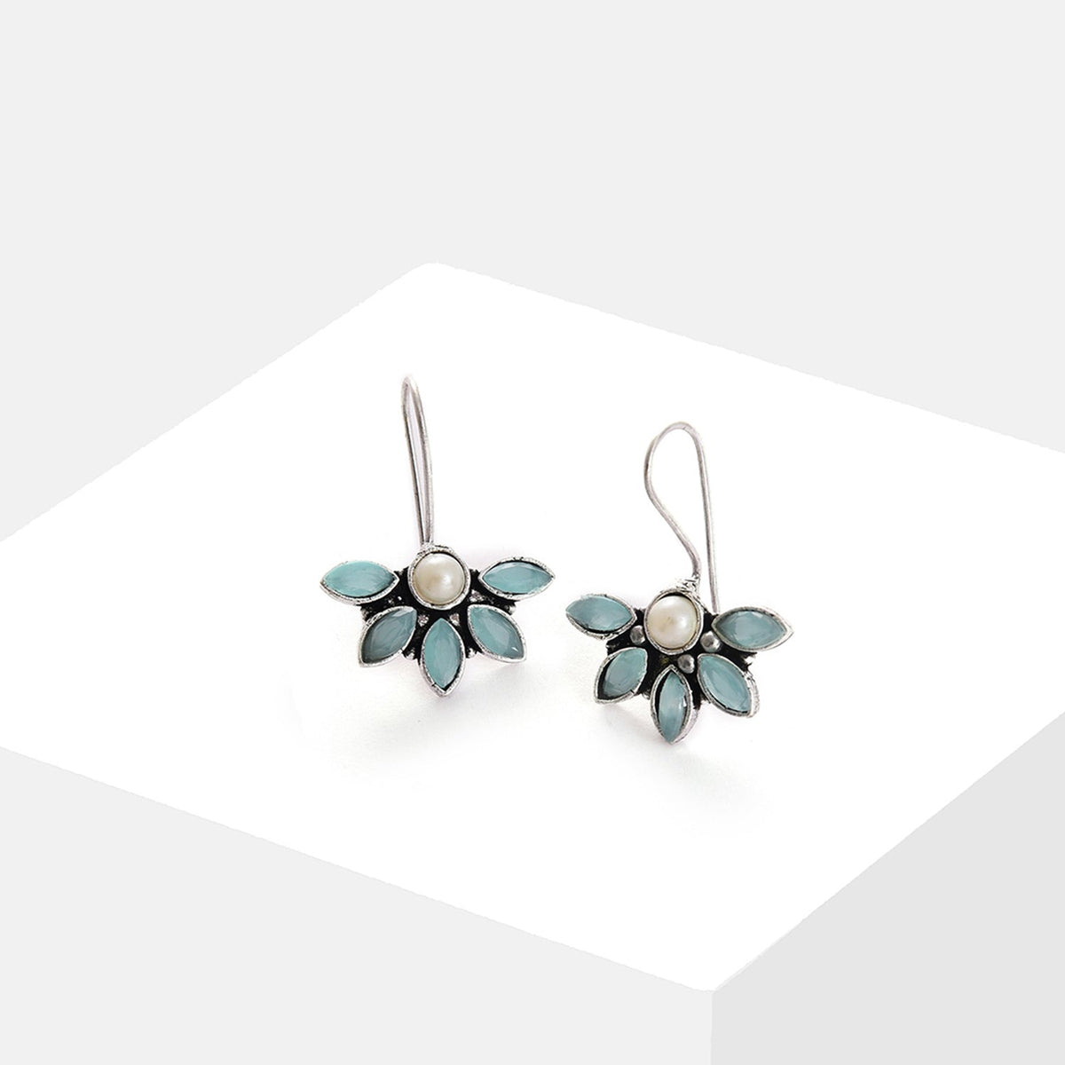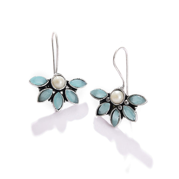Blue Color Silver Plated Designer Stone Drop Earring