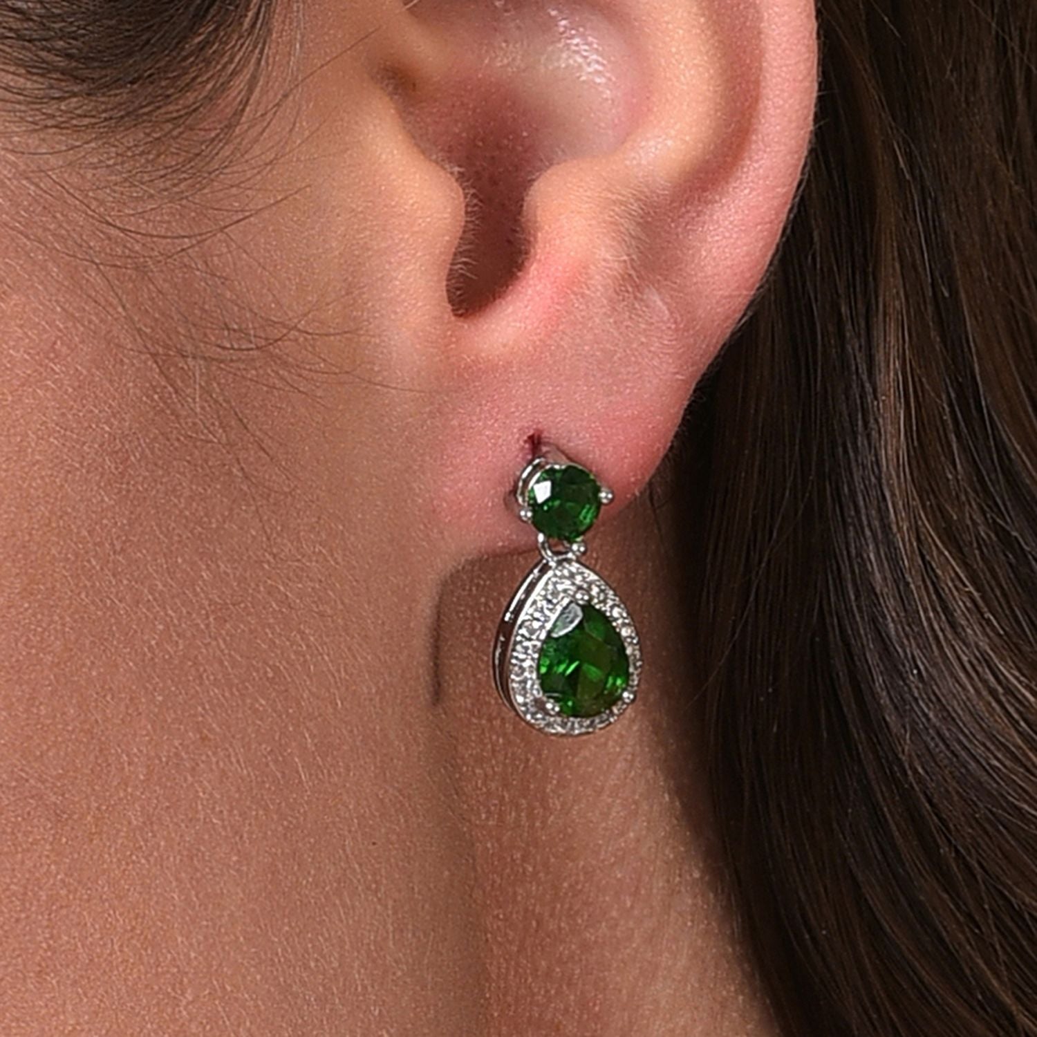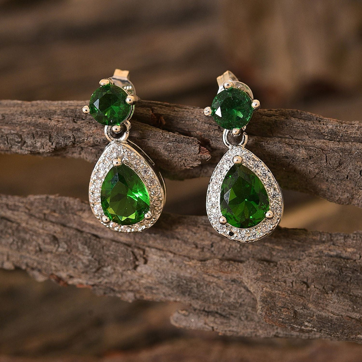 Green Color Pack Of 2 Silver Plated American Diamond Drop Earring For Women's