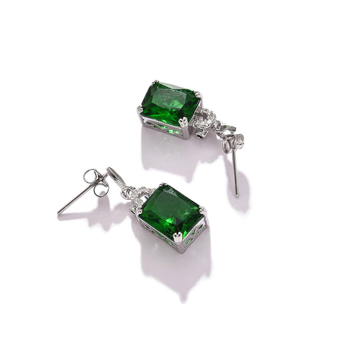 Made from high-quality alloy with a premium silver plating, these earrings feature carefully set designer stones in a striking green hue. Designed for export quality, they are lightweight, anti-allergic, and crafted for long-lasting brilliance.
