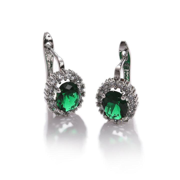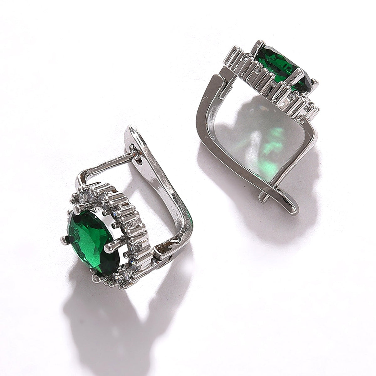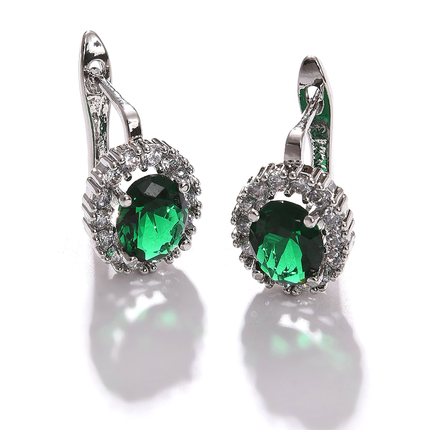 Green Color Pack Of 2 Silver Plated American Diamond Stud For Women's