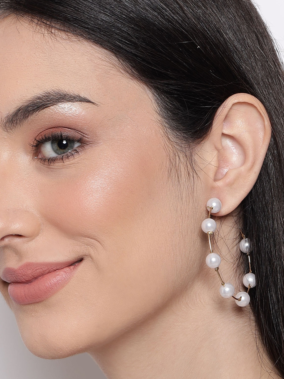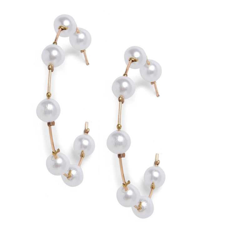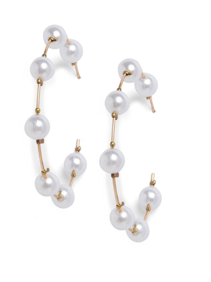 Gold-plated Pearl Half Hoop Earrings