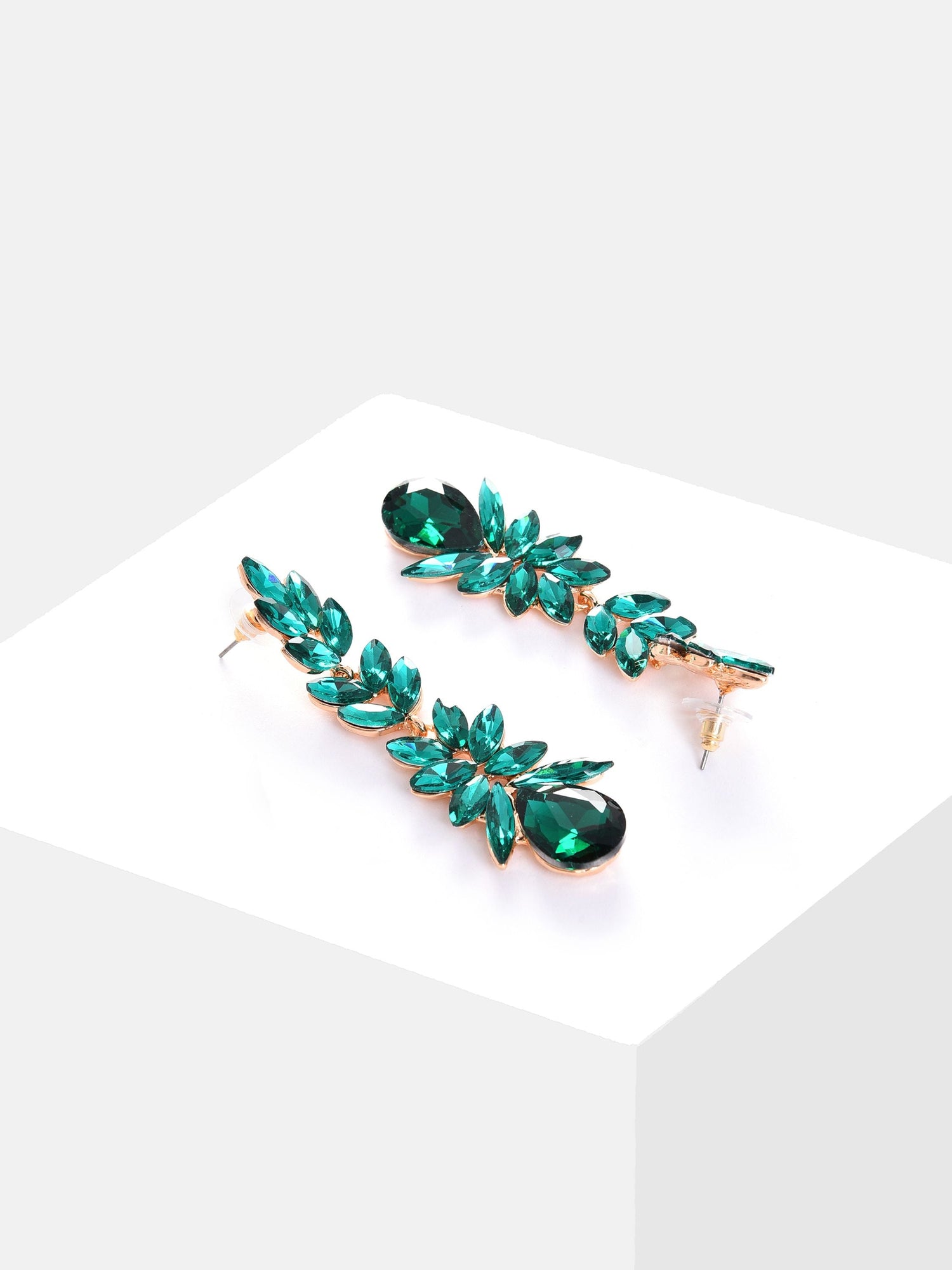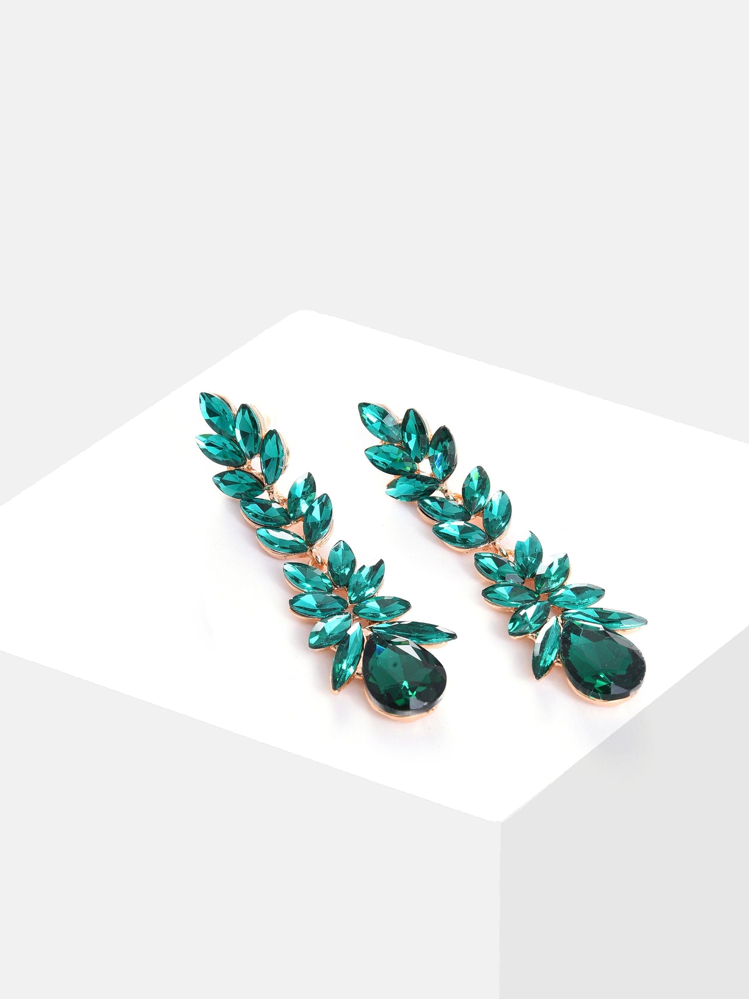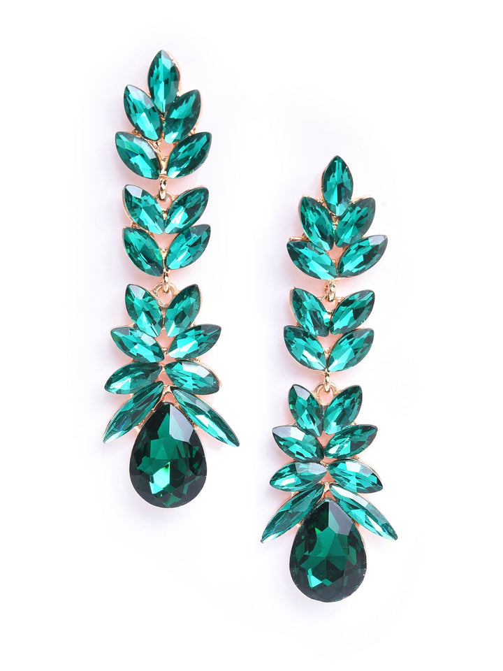 Green Stone Studded Leaf Contemporary Drop Earrings