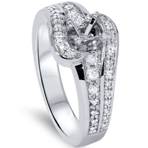 This 1/3ct Diamond Engagement Setting by Pompeii3 offers a classic yet modern semi-mount design. Featuring 40 round brilliant cut natural diamonds set in solid 14k white gold, this engagement setting provides the perfect foundation for a custom center stone. With options for round or square prongs, this setting is ideal for creating a personalized engagement ring that reflects your unique style.