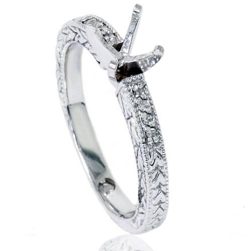 1/10ct Vintage Diamond Ring Setting 14K White Gold