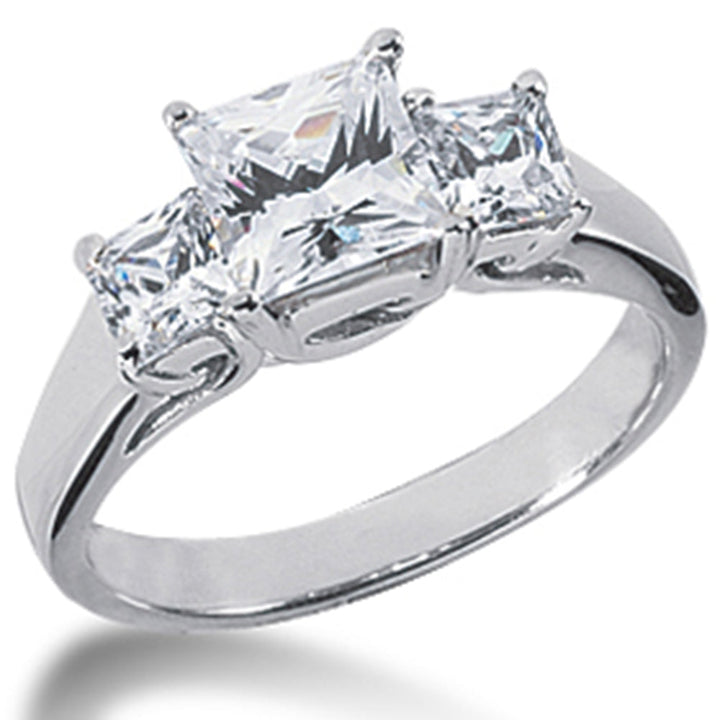 Set in 14k white gold with three princess-cut natural diamonds (H-I color, I1 clarity). Center stone: 5/8ct. Total diamond weight: 1 1/4ct.