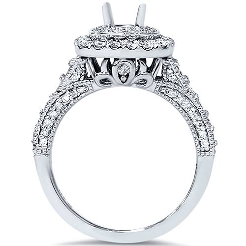 1ct Double Cushion Halo Diamond Engagement Setting 14K White Gold
