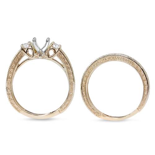 7/8ct Vintage Engagement Ring Mount Set 14K Yellow Gold