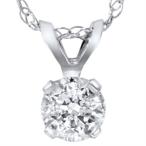 Made from 14k white gold with a 1 1/2ct round brilliant cut diamond. Diamond clarity: SI, color: F-G. 18' 14k white gold chain with clasp lock.