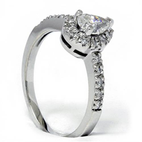 Set in 14k white gold with a 0.25ct pear-shaped lab-grown diamond (VS clarity). Halo and shank adorned with round brilliant-cut lab-grown diamonds.