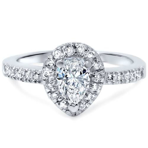 1/2ct Pear Shape Halo Diamond Engagement Ring 14K White Gold