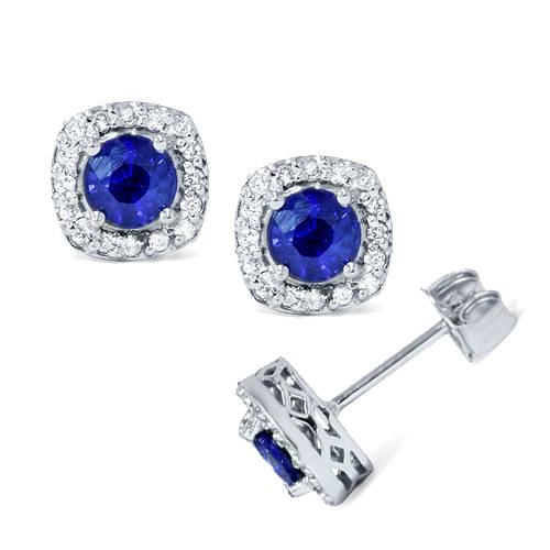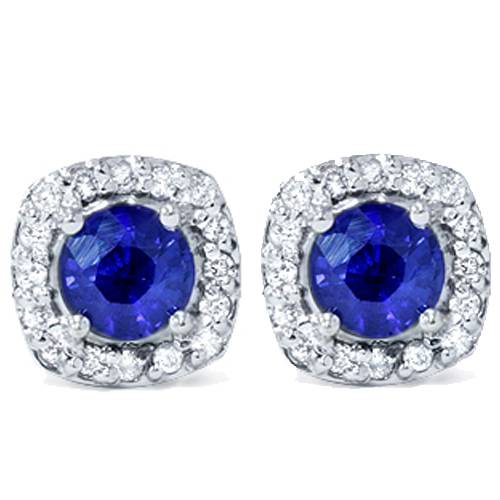 1 5/8ct Pave Halo Sapphire Diamond Studs 14K White Gold