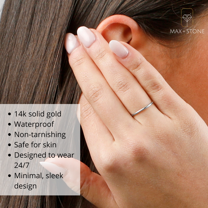 Solid 14k Gold Wedding Band Ring in White Gold, Yellow Gold 1mm Thin Stacking Band in Size 6 to 8