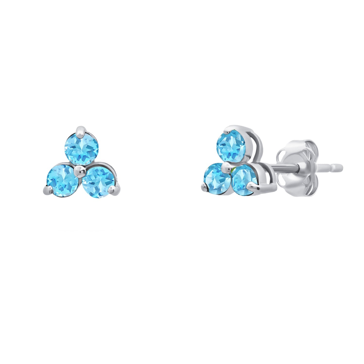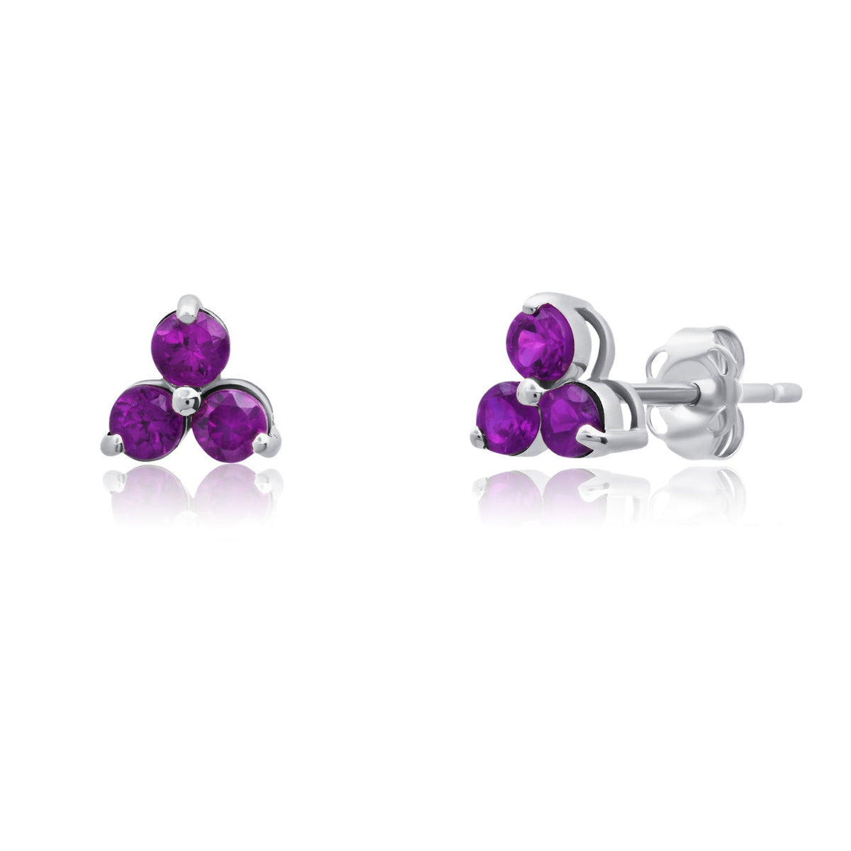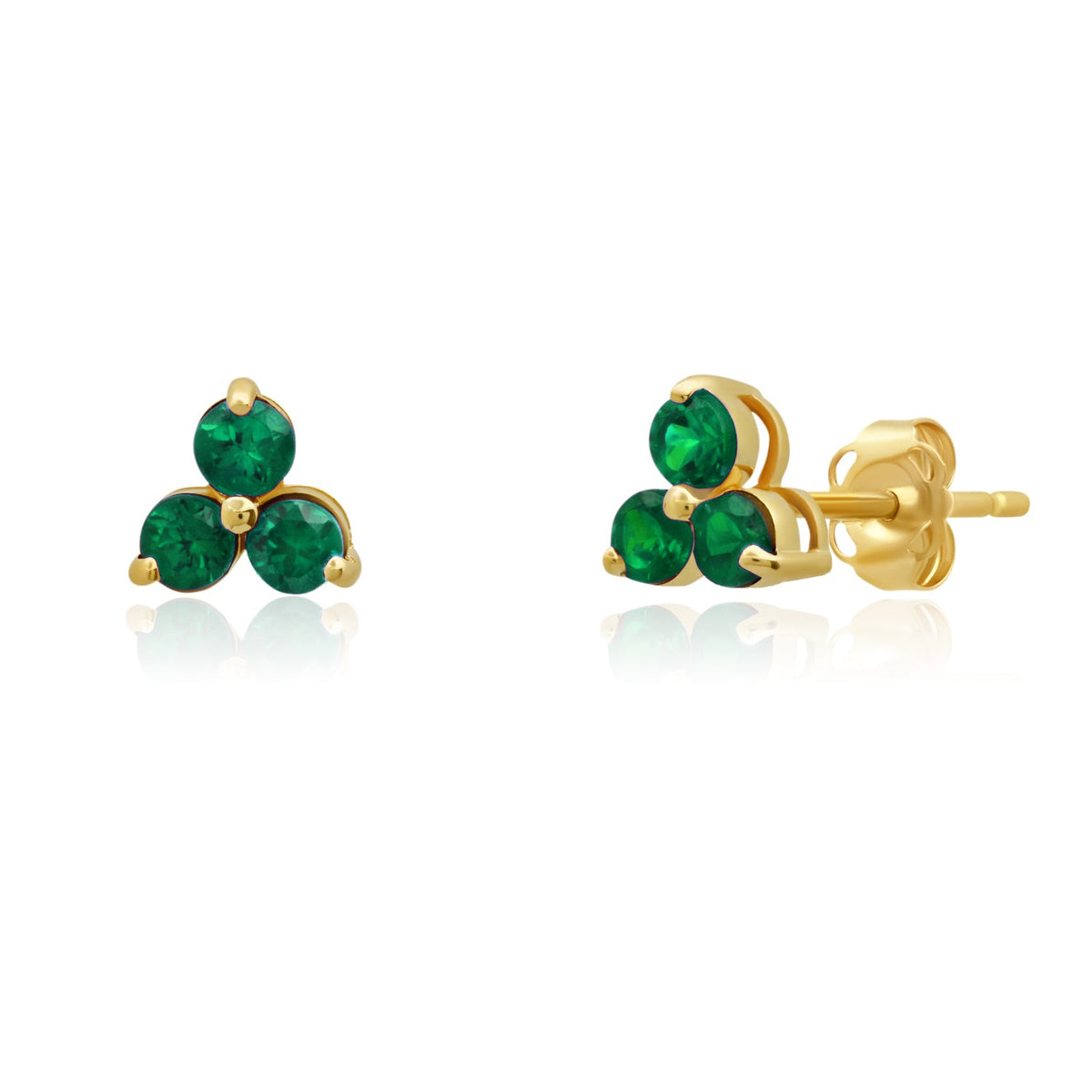 14k White or Yellow Gold Small Gemstone Trio Round Stud Earrings with Push Backs