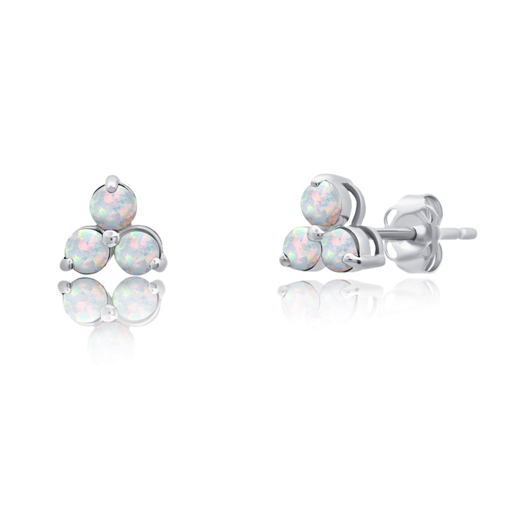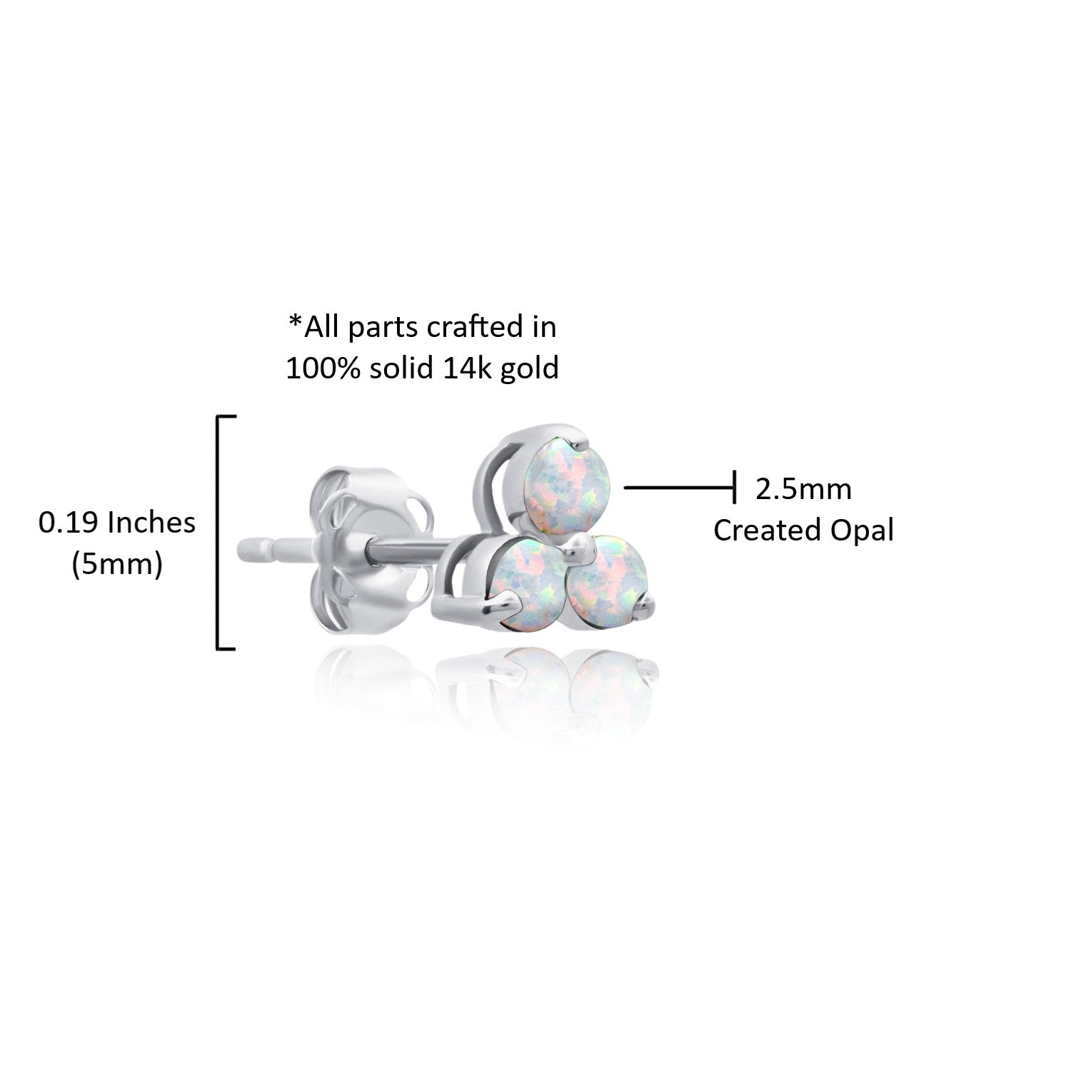 These Small Gemstone Trio Round Stud Earrings by MaxColor are a timeless classic that features three sparkling gemstones set in 14K white or yellow gold. These earrings are perfect for adding a hint of color and shine to any outfit, with opal stones adding a touch of vibrant elegance. Ideal for both casual and dressy occasions, they’re a must-have addition to any jewelry box.