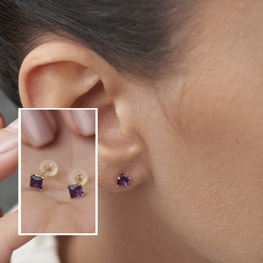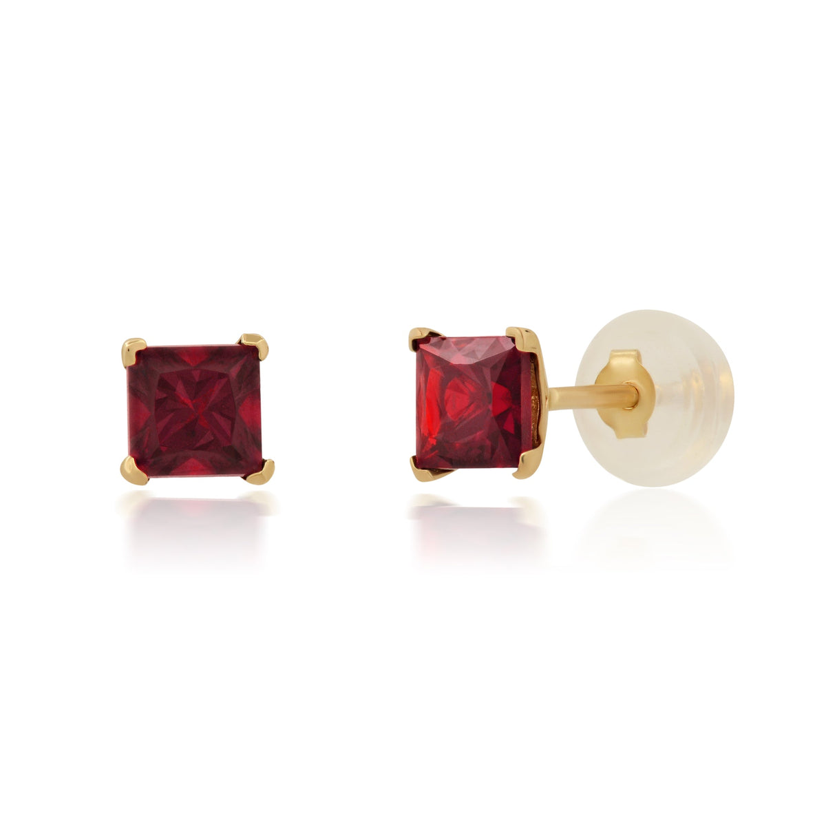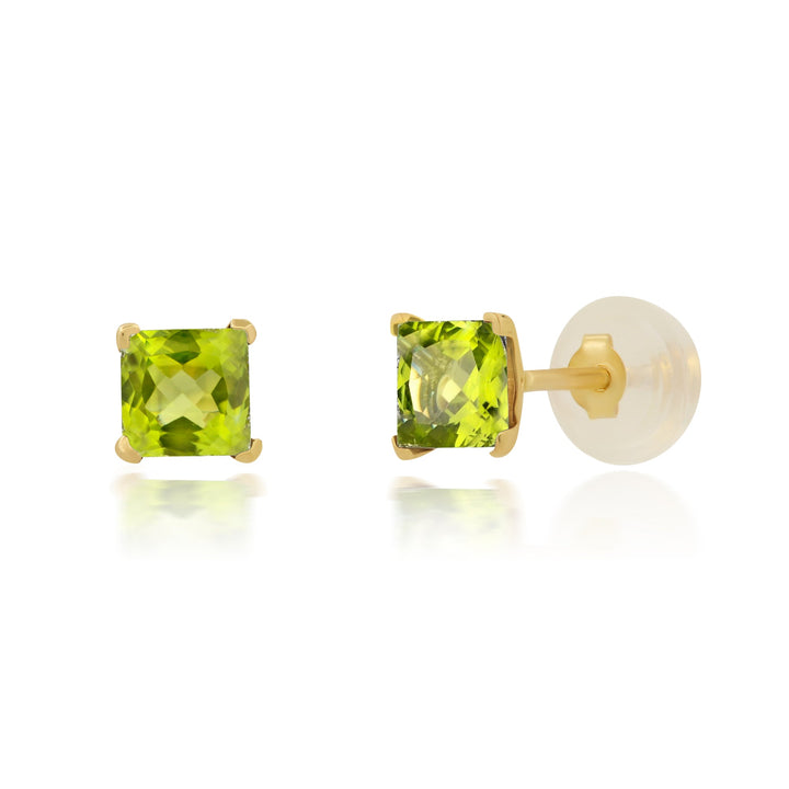14k White or Yellow Gold Square Princess Cut 4MM Gemstone Stud Earrings