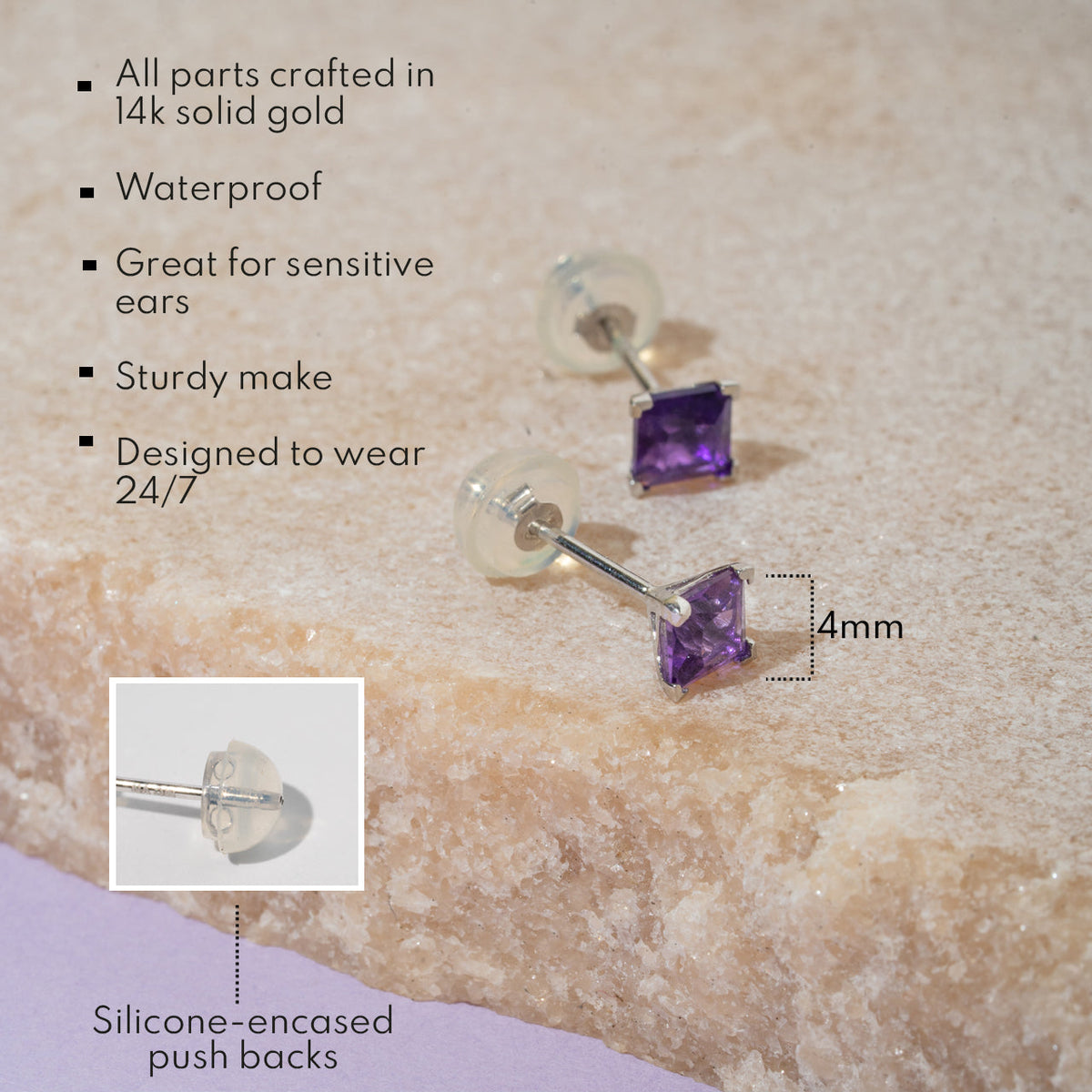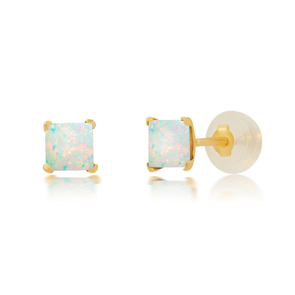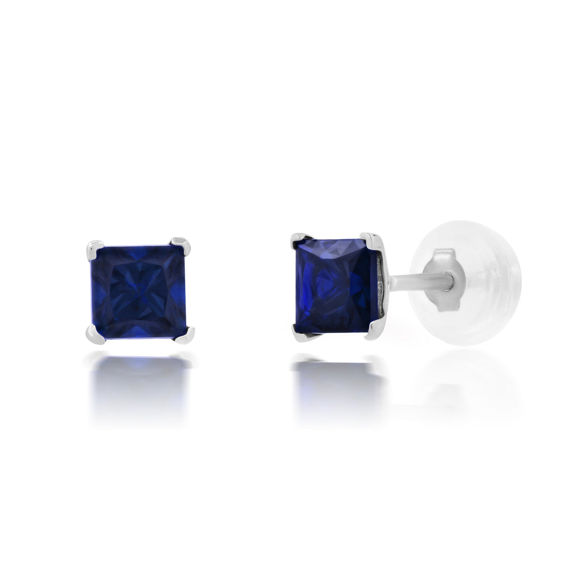 14k White or Yellow Gold Square Princess Cut 4MM Gemstone Stud Earrings