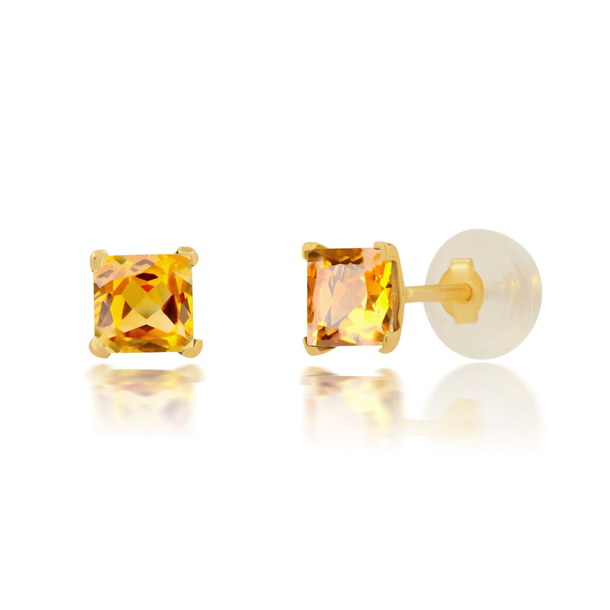 Crafted in 14K white or yellow gold with square princess cut gemstones.