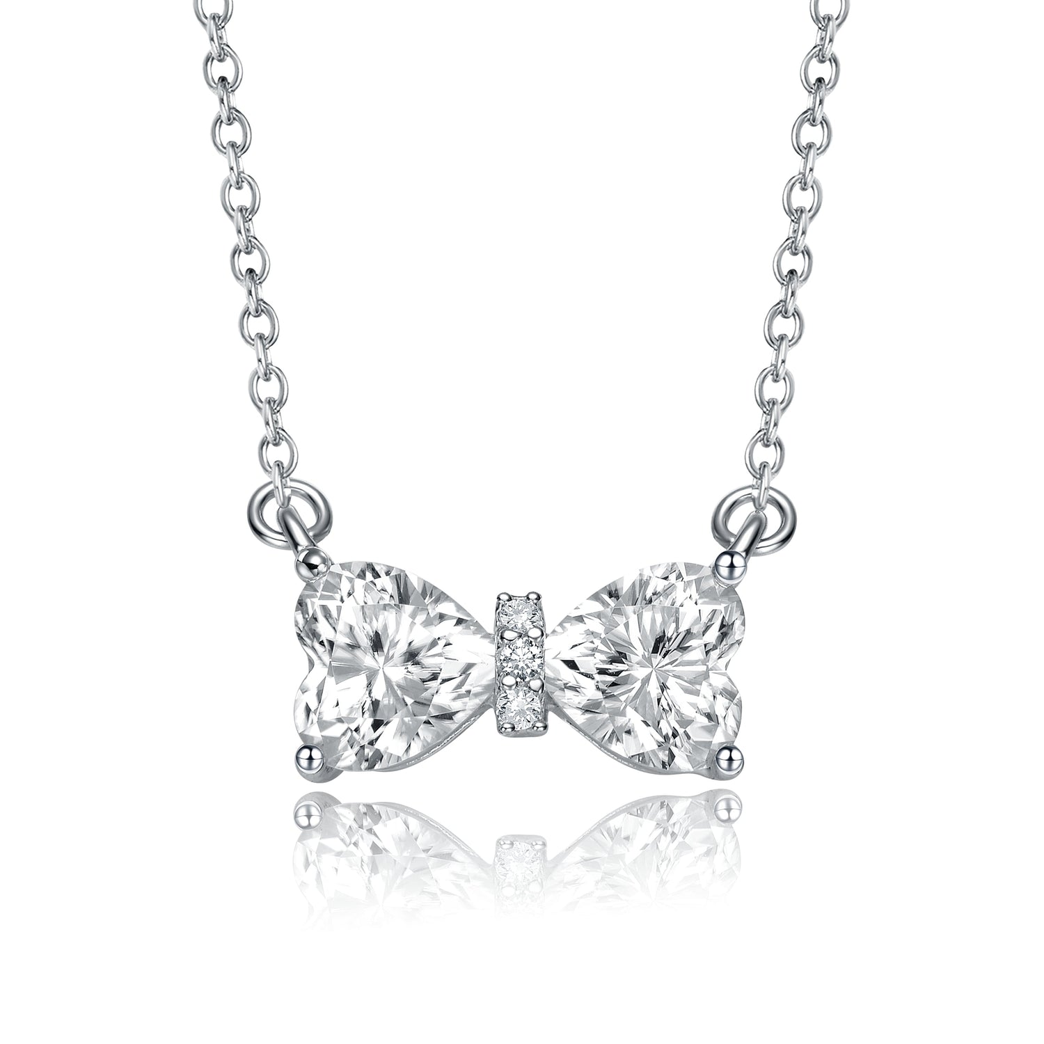 Sterling Silver with 1.50ctw Lab Created Moissanite Bow-Tie Heart Pendant Layering Necklace
