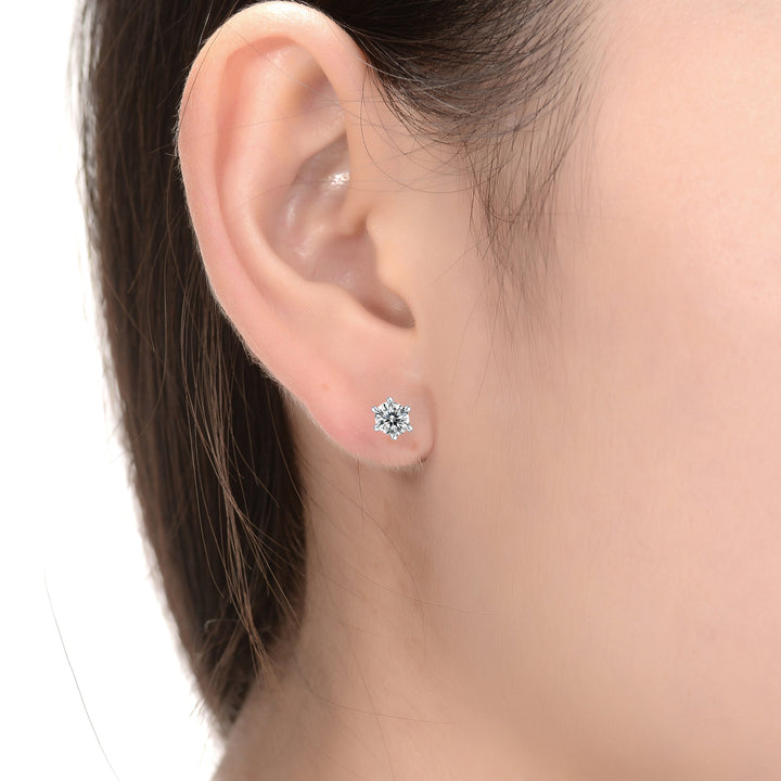 Crafted in sterling silver. Features 0.50ctw of round brilliant-cut lab-created moissanite stones (VVS1 clarity, D color). Vintage 6-prong setting with butterfly back closure.