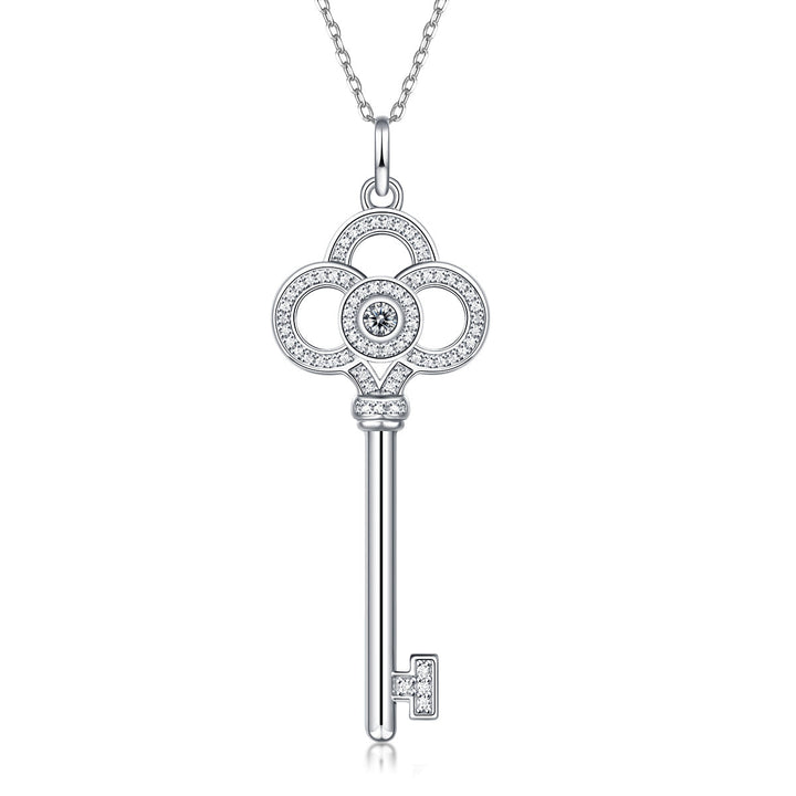 Sterling Silver with 0.10ctw Lab Created Moissanite Skeleton Key Eternity Circle Pendant Necklace