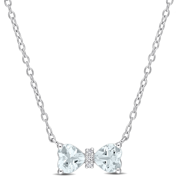 Mimi & Max 3/4 CT TGW Heart Aquamarine and Diamond Accent Bow Necklace in Sterling Silver