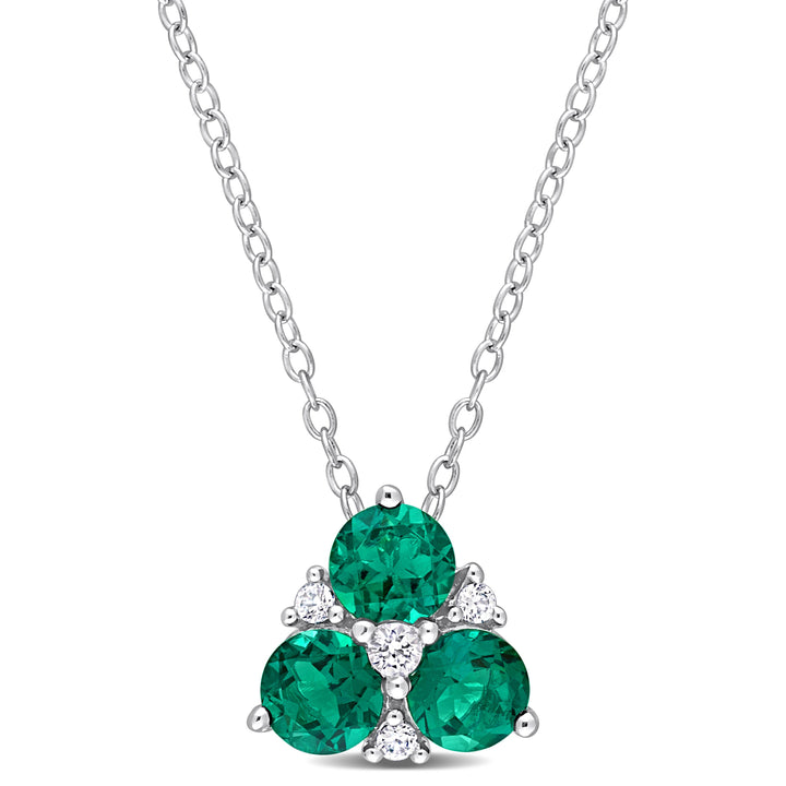 Mimi & Max 1 1/4 CT TGW Created Emerald and Created White Sapphire 3-Stone Pendant with Chain in Sterling Silver