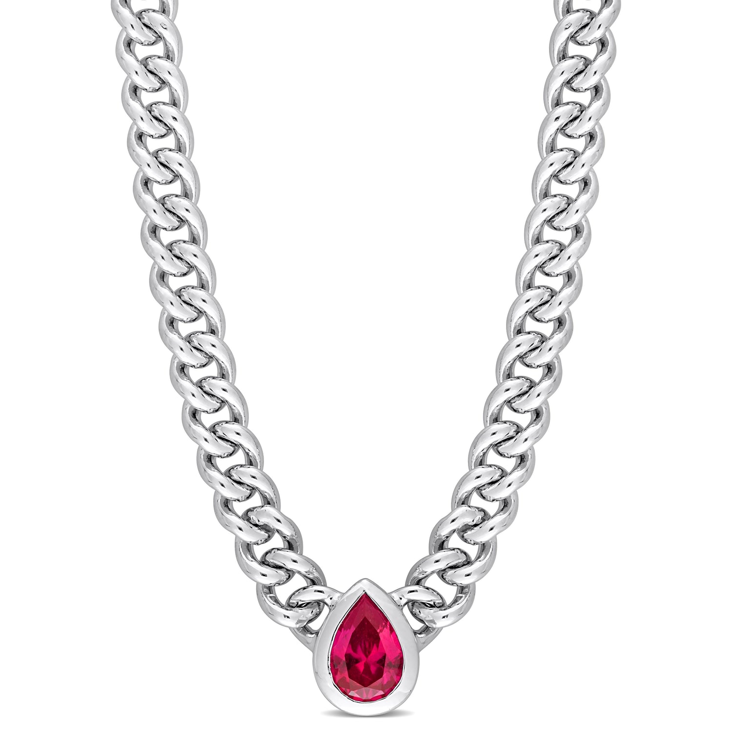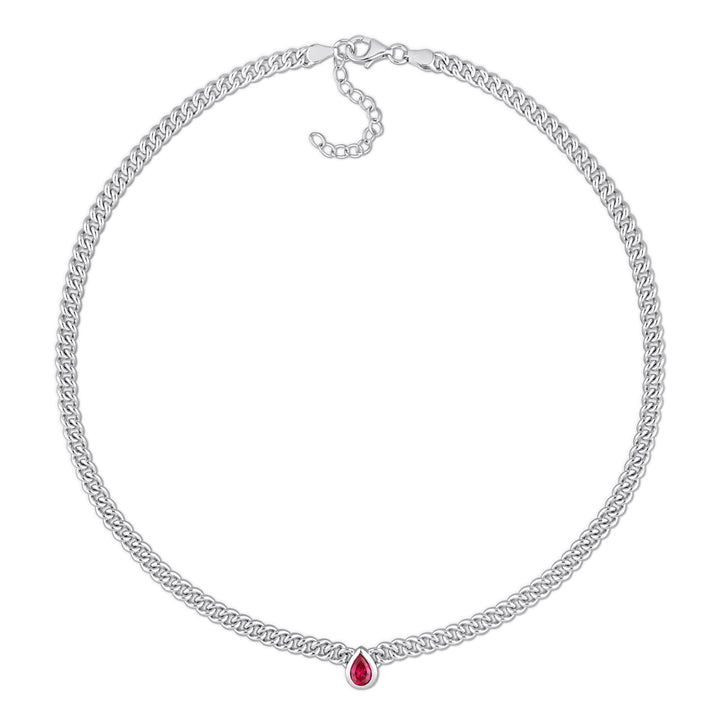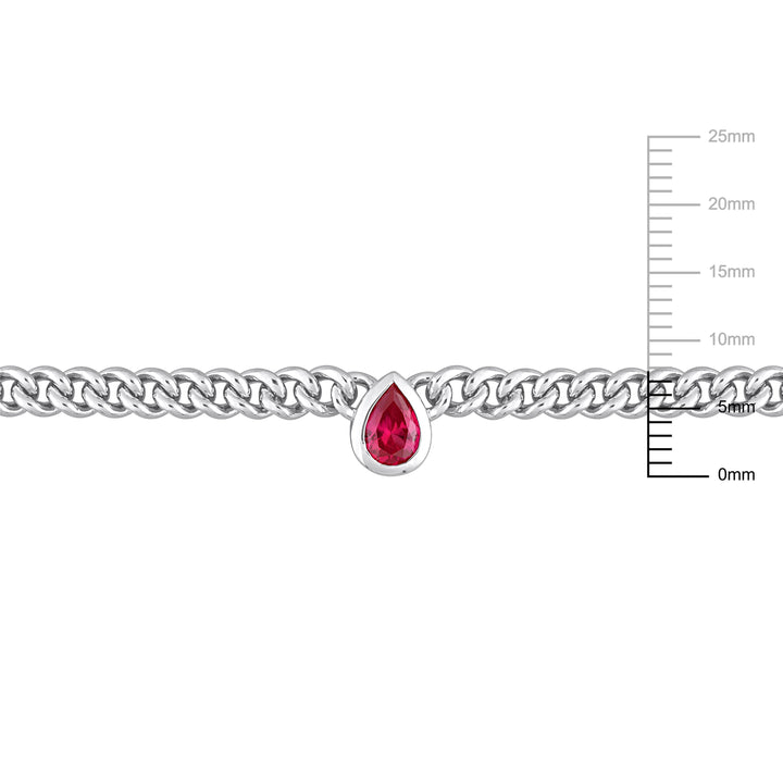 Mimi & Max 1 1/7 CT TGW Pear Created Ruby Curb Link Chain Necklace in Sterling Silver