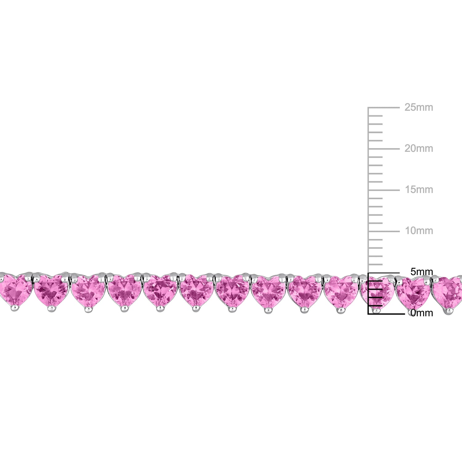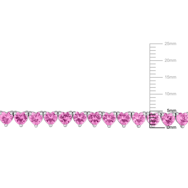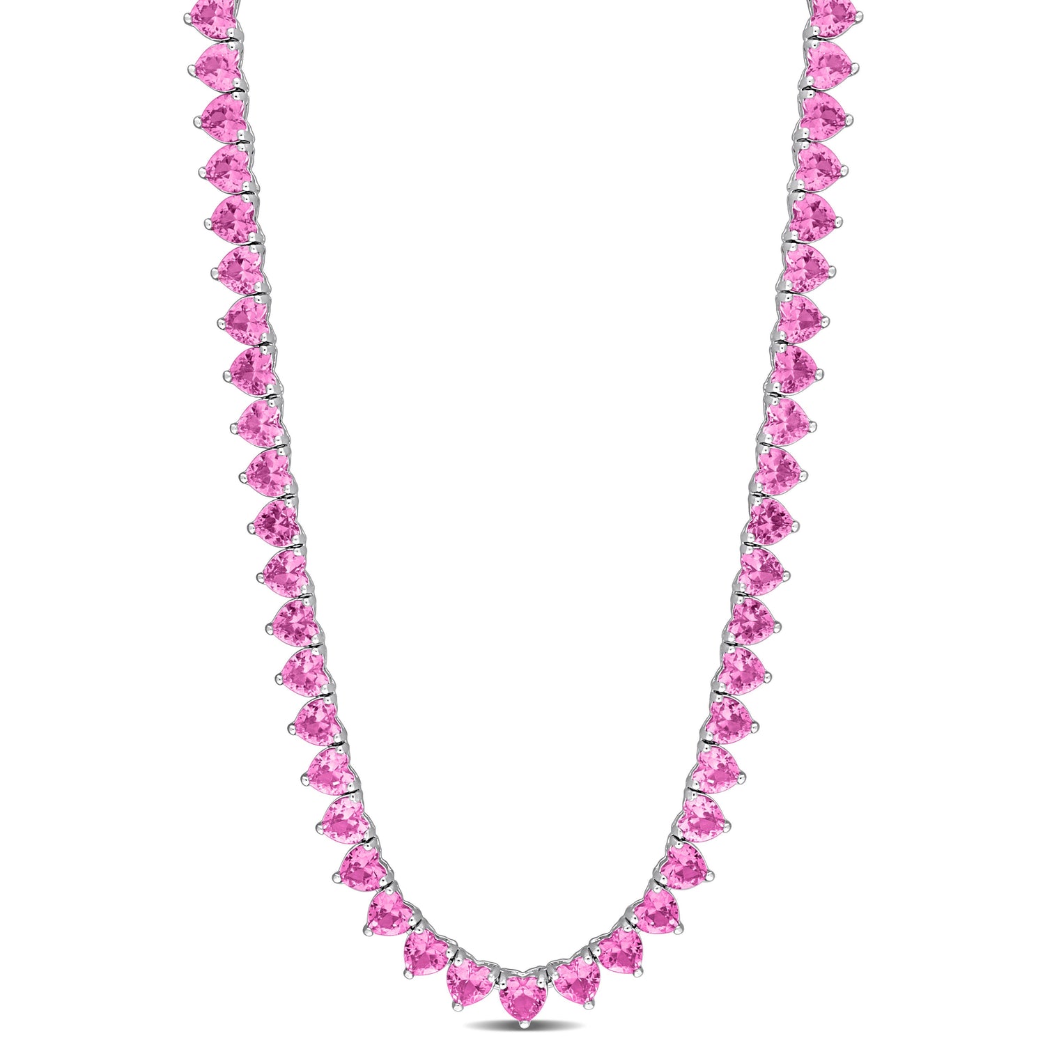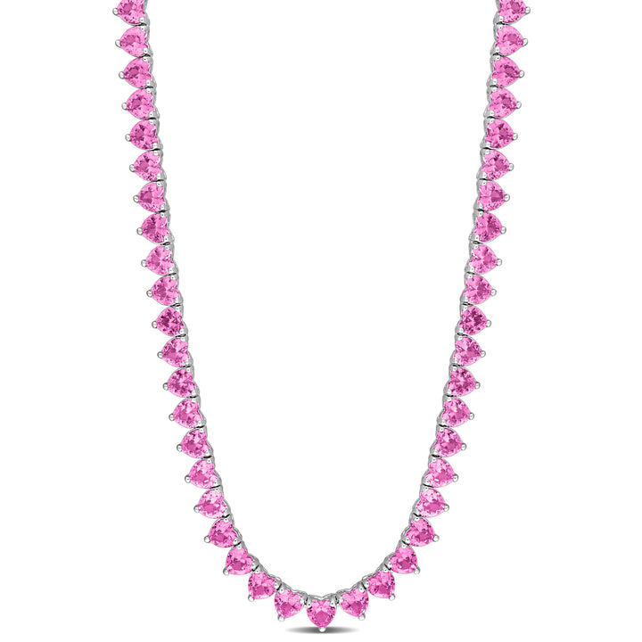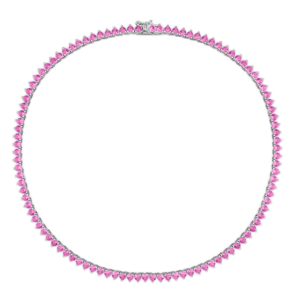 Mimi & Max 31-1/5ct TGW Heart-Cut Created Pink Sapphire Tennis Necklace in Sterling Silver - 18 in.