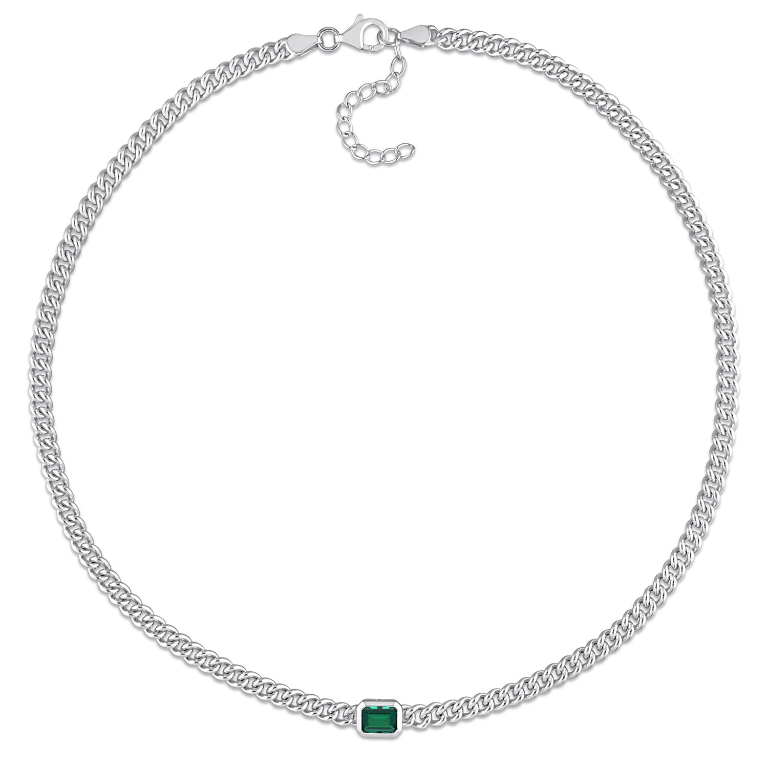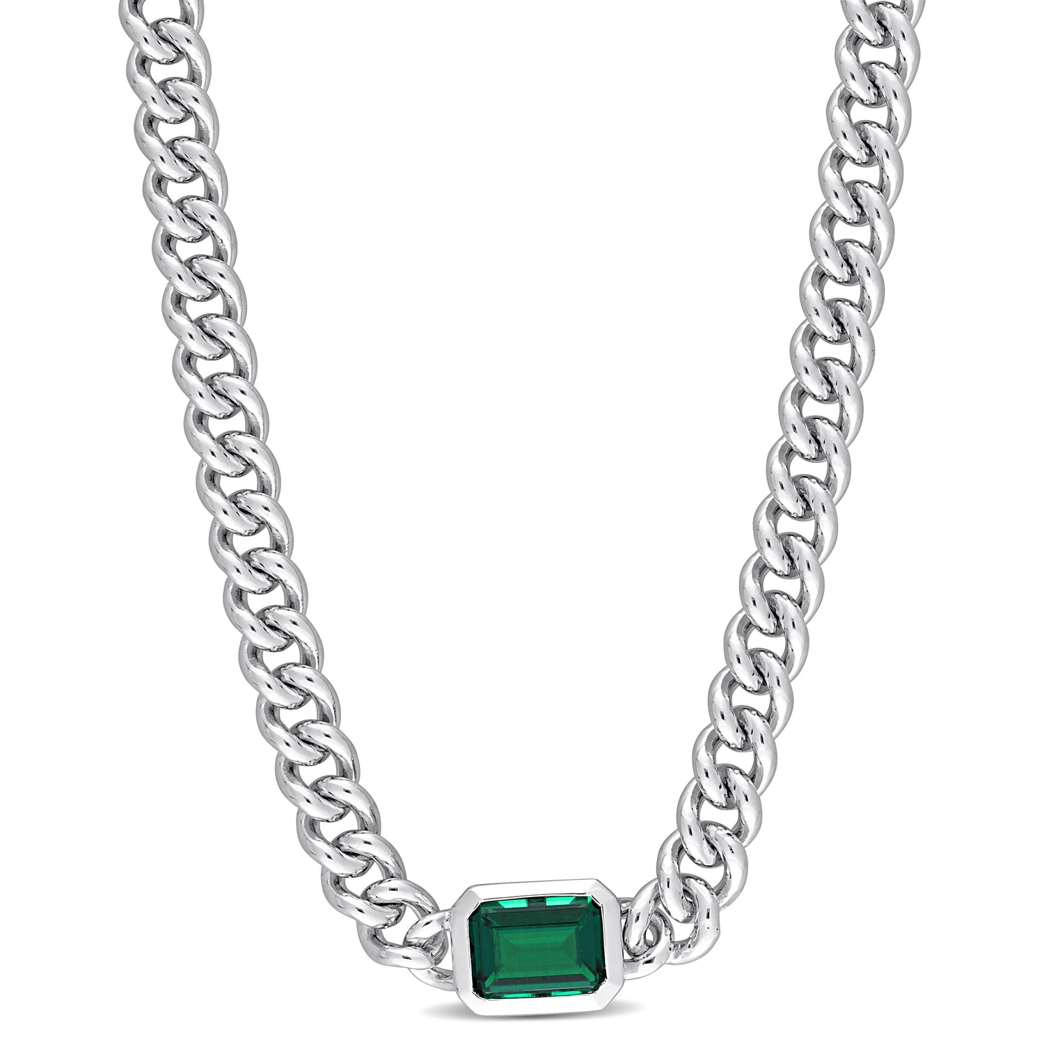 Sterling silver with 7 x 5mm octagon-cut created emerald, 16-inch chain, lobster clasp.