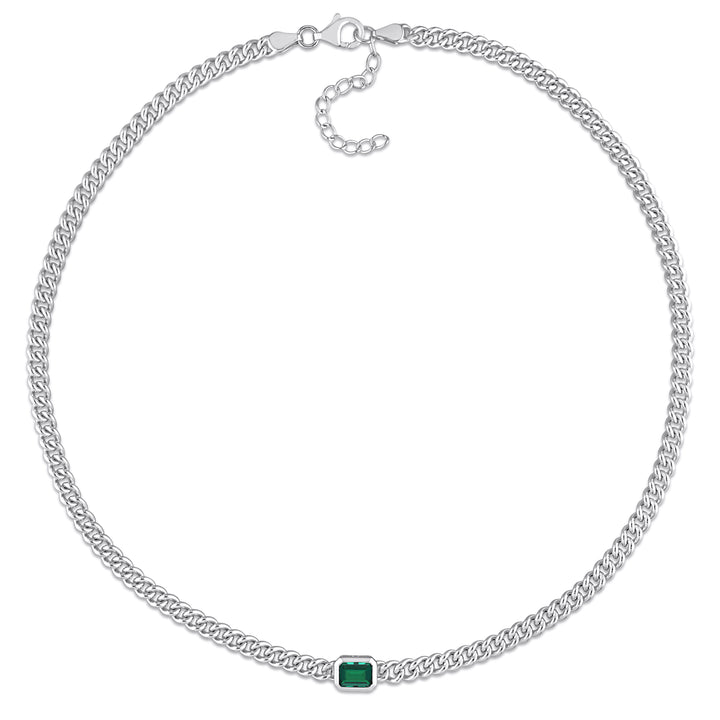 Mimi & Max 7/8 CT TGW Octagon Created Emerald Curb Link Chain Necklace in Sterling Silver