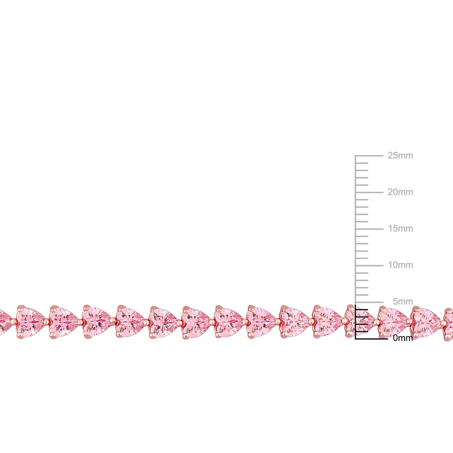 This Mimi & Max 12 1/3 CT TGW Created Pink Heart-Cut Sapphire Tennis Bracelet is a show-stopping piece. Crafted in shimmering rose-plated sterling silver, this bracelet features 27 heart-cut created pink sapphire gemstones, creating a radiant display of color and sparkle. Perfect for special occasions or adding a bold statement to everyday wear, this bracelet will shine wherever you go.