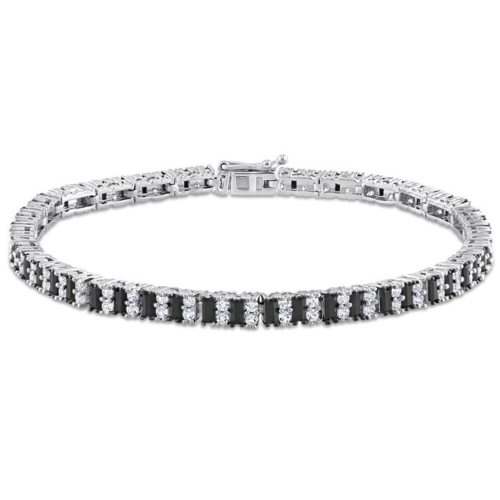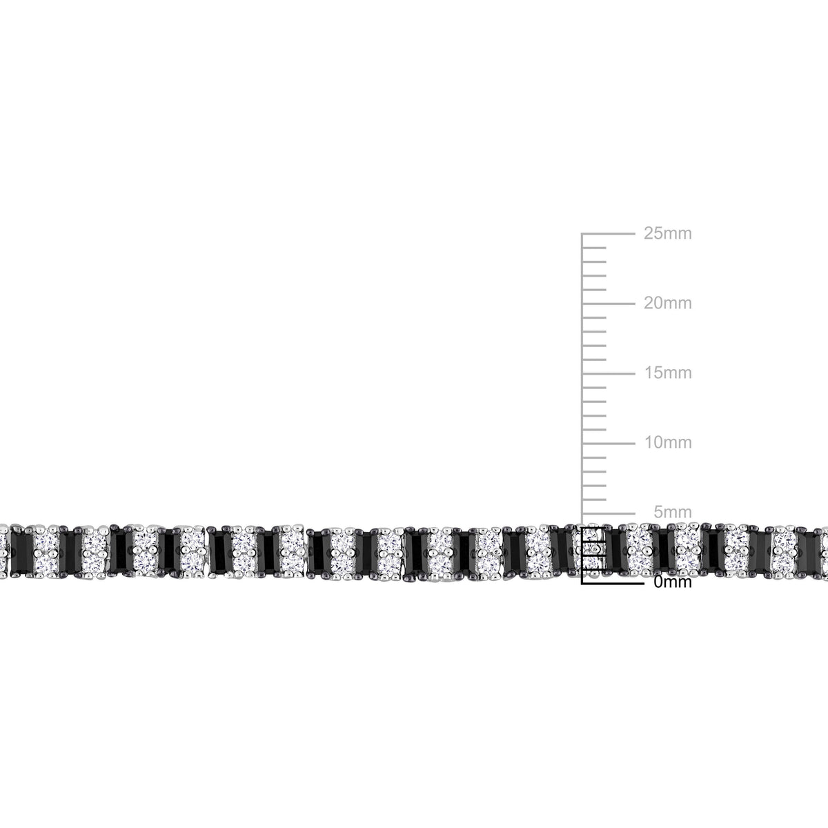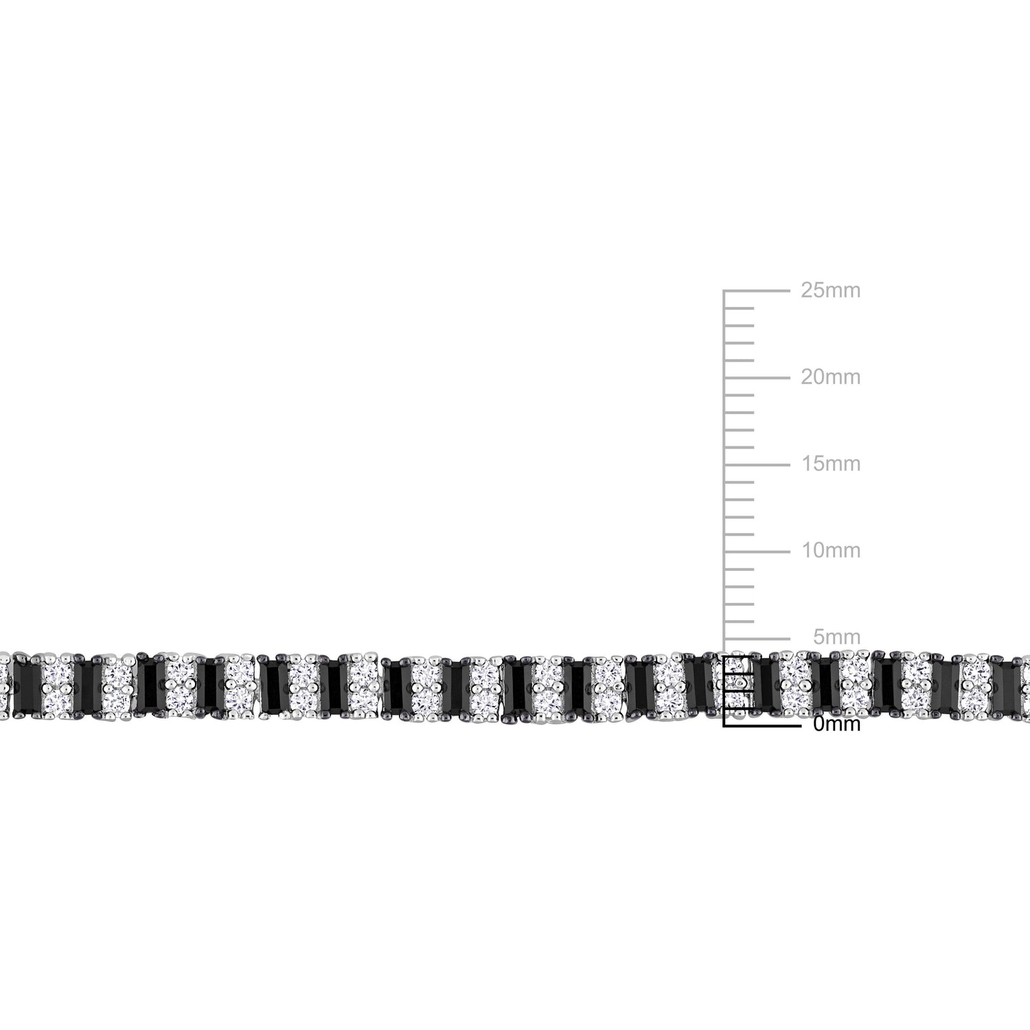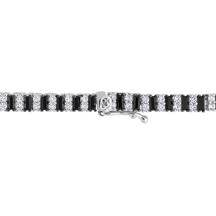 Crafted in sterling silver, with 54 baguette-cut black spinel and 108 created white sapphire gemstones. Measures 7.25 inches in length.