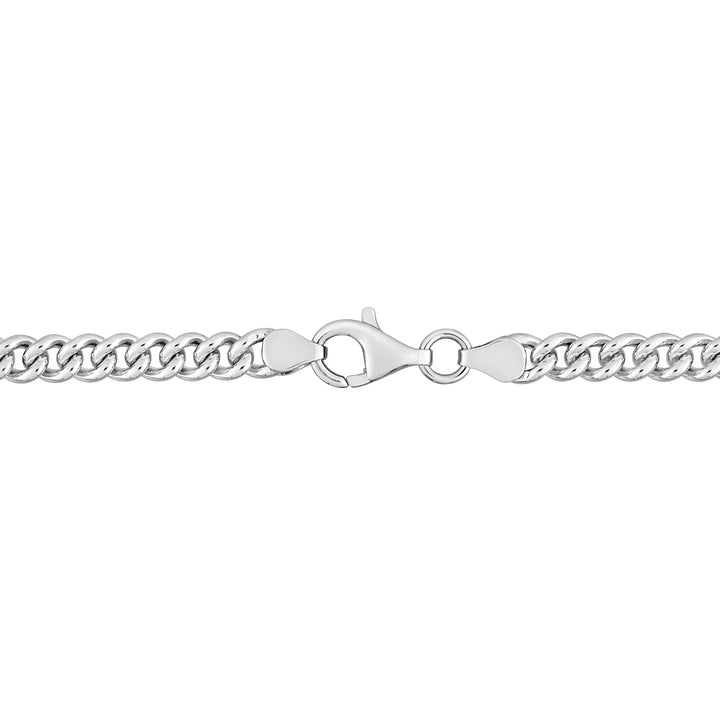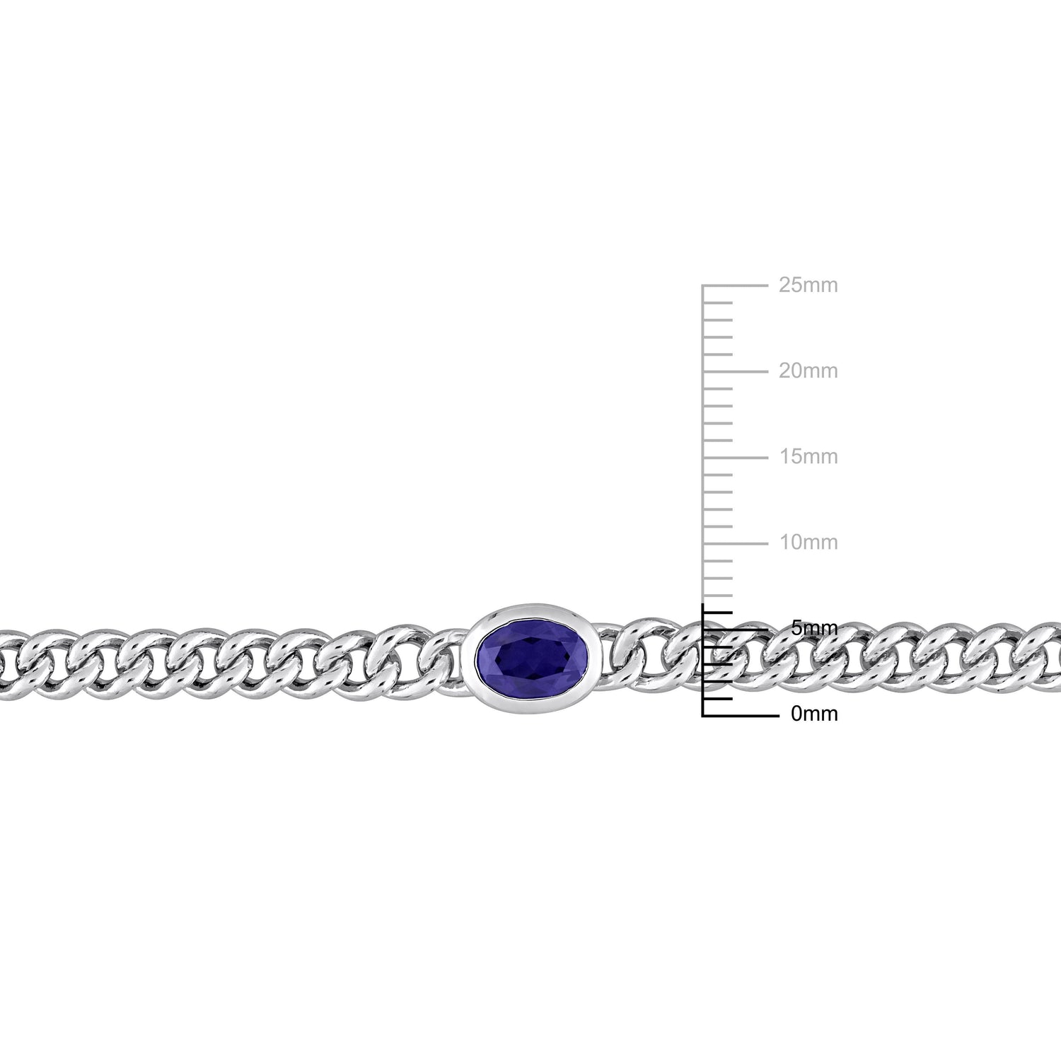 This Mimi & Max 1 1/4 CT TGW Oval Created Blue Sapphire Curb Link Chain Bracelet in Sterling Silver is a dazzling piece that combines elegance and modern design. Featuring a 7x5mm oval-cut, bezel-set created blue sapphire at the center, the bracelet is crafted in lustrous sterling silver with a flat curb chain. The bracelet measures 7.5 inches in length, offering a comfortable fit with a secure lobster clasp.